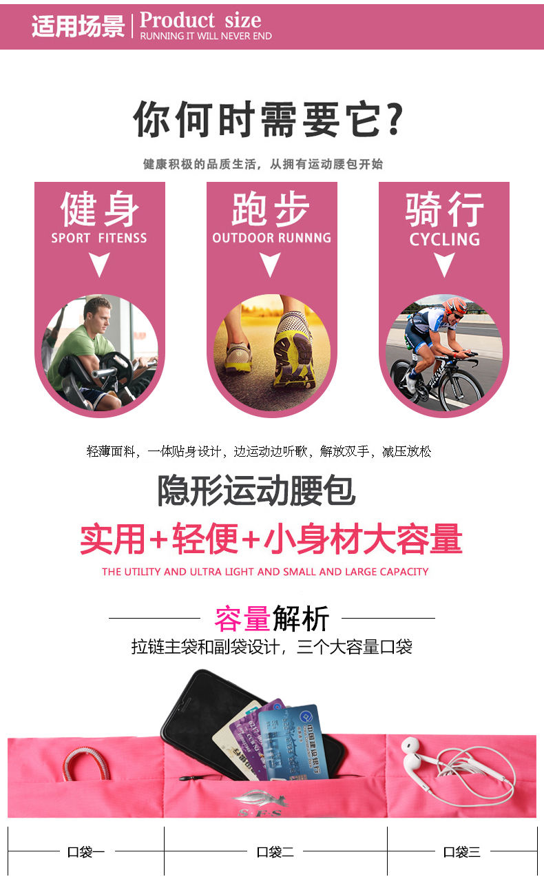 隐形腰带包户外健身装备运动腰包 多功能跑步手机腰包