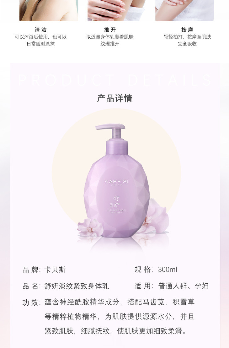 【轻轻一抹 秒变女神】发明专利&各国进口成分 补水保湿 细腻抚纹 紧致肌肤 卡贝斯舒妍淡纹紧致身体乳液