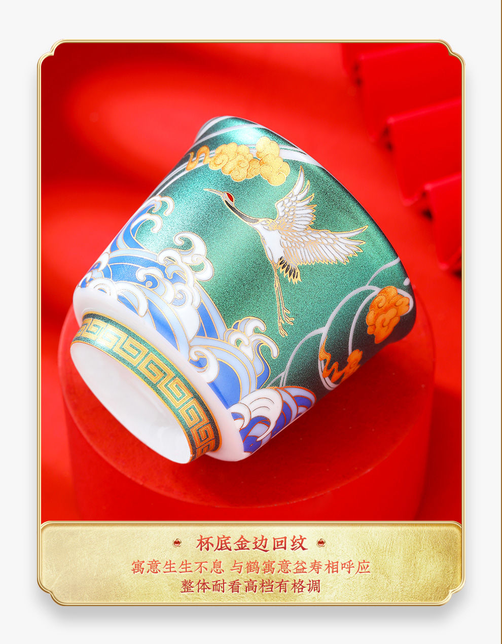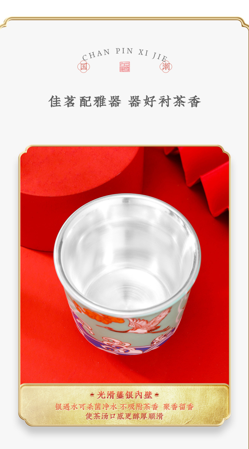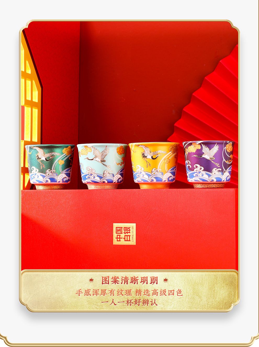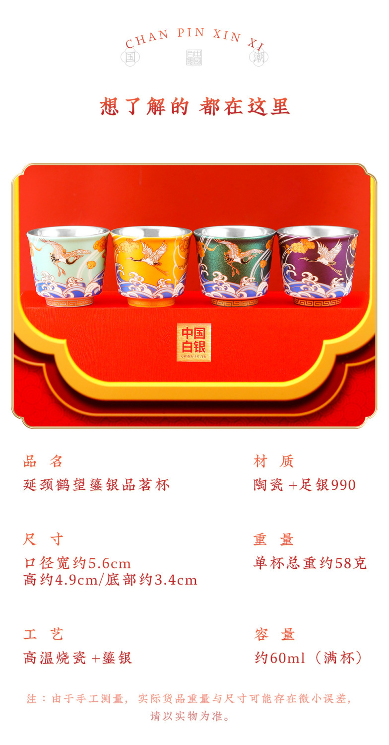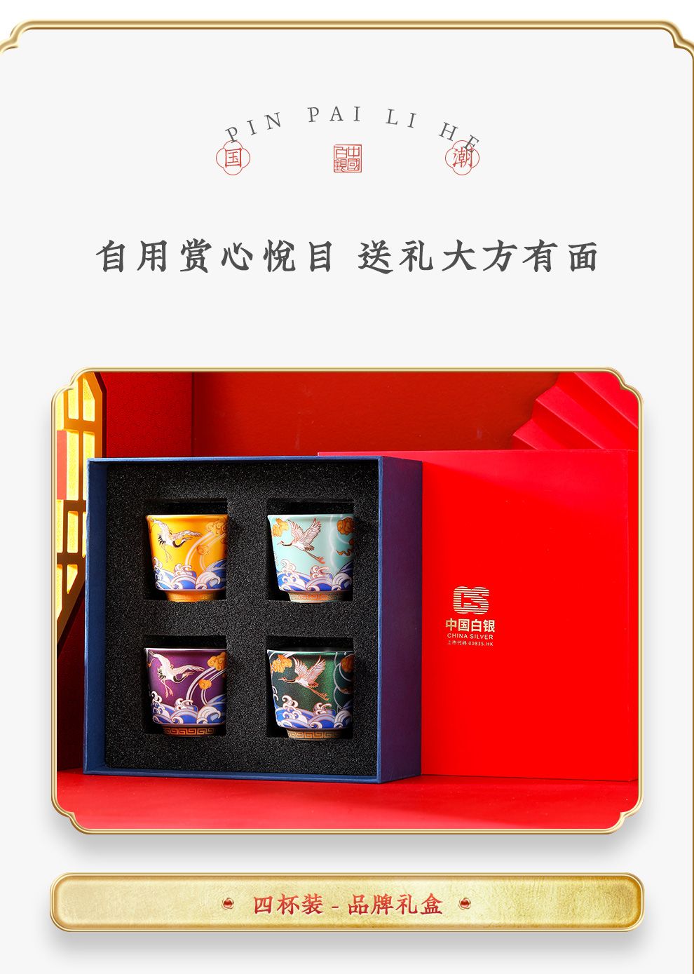 银延颈鹤望鎏银品茗杯 送礼送好友鎏金银杯