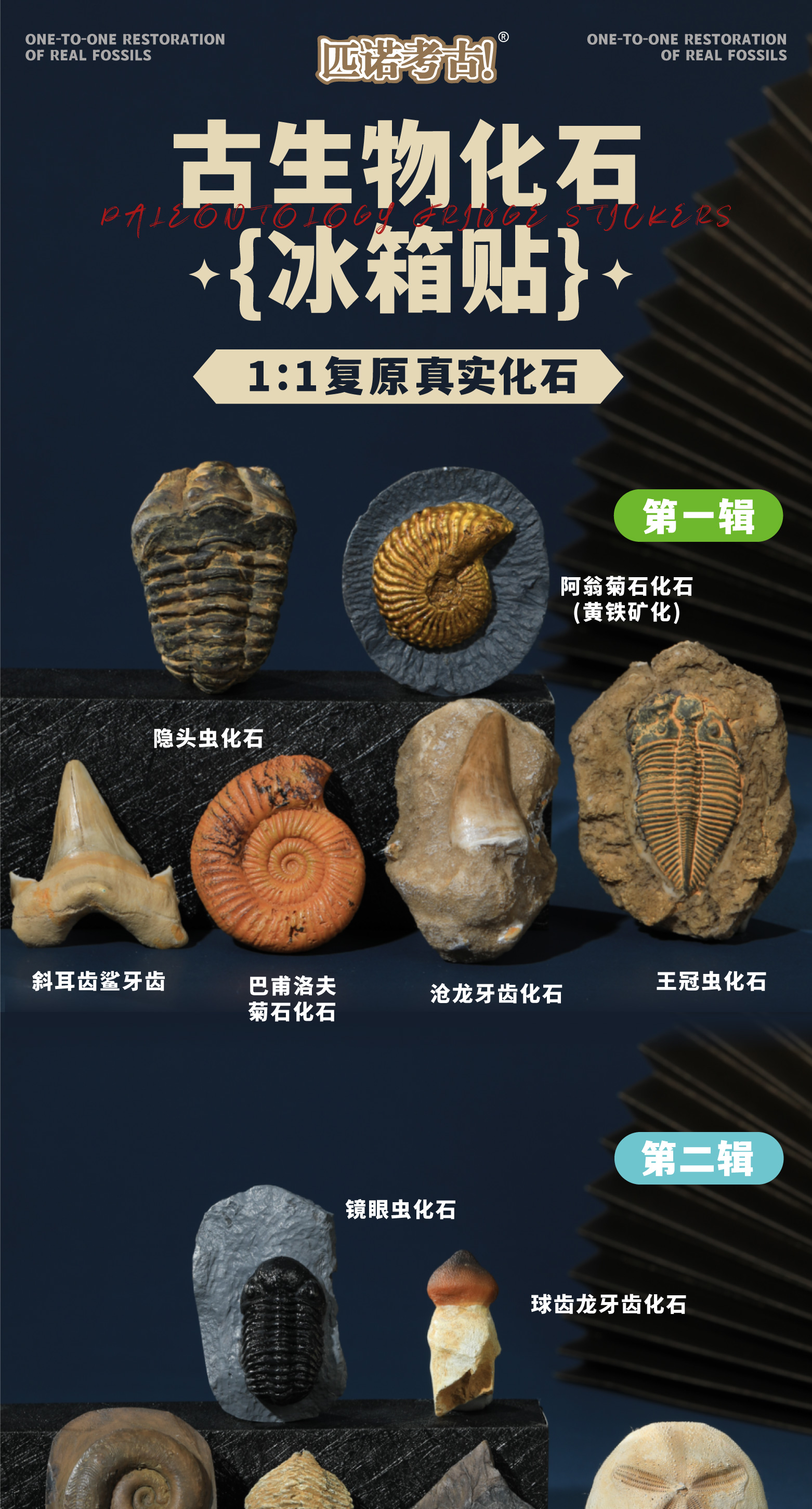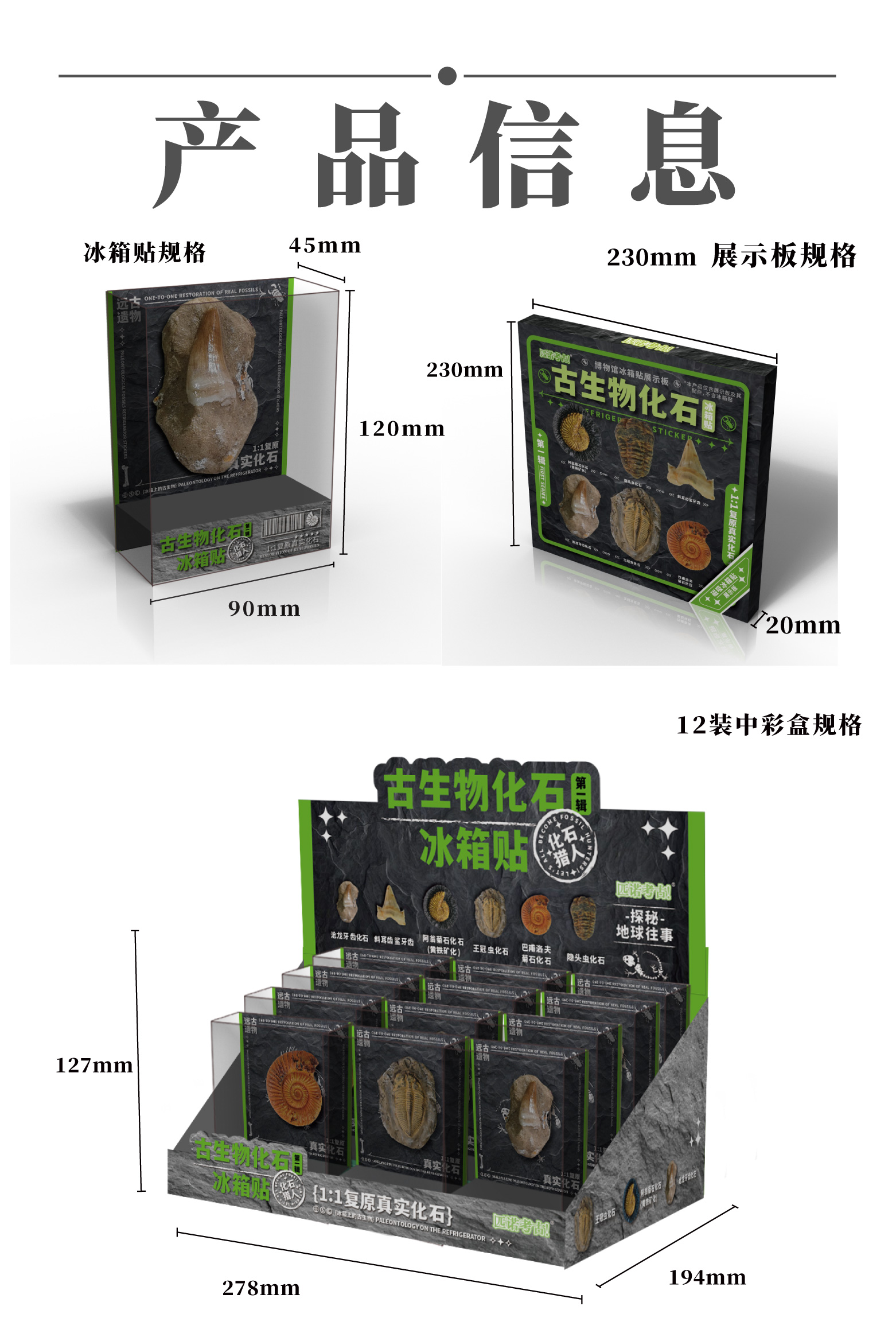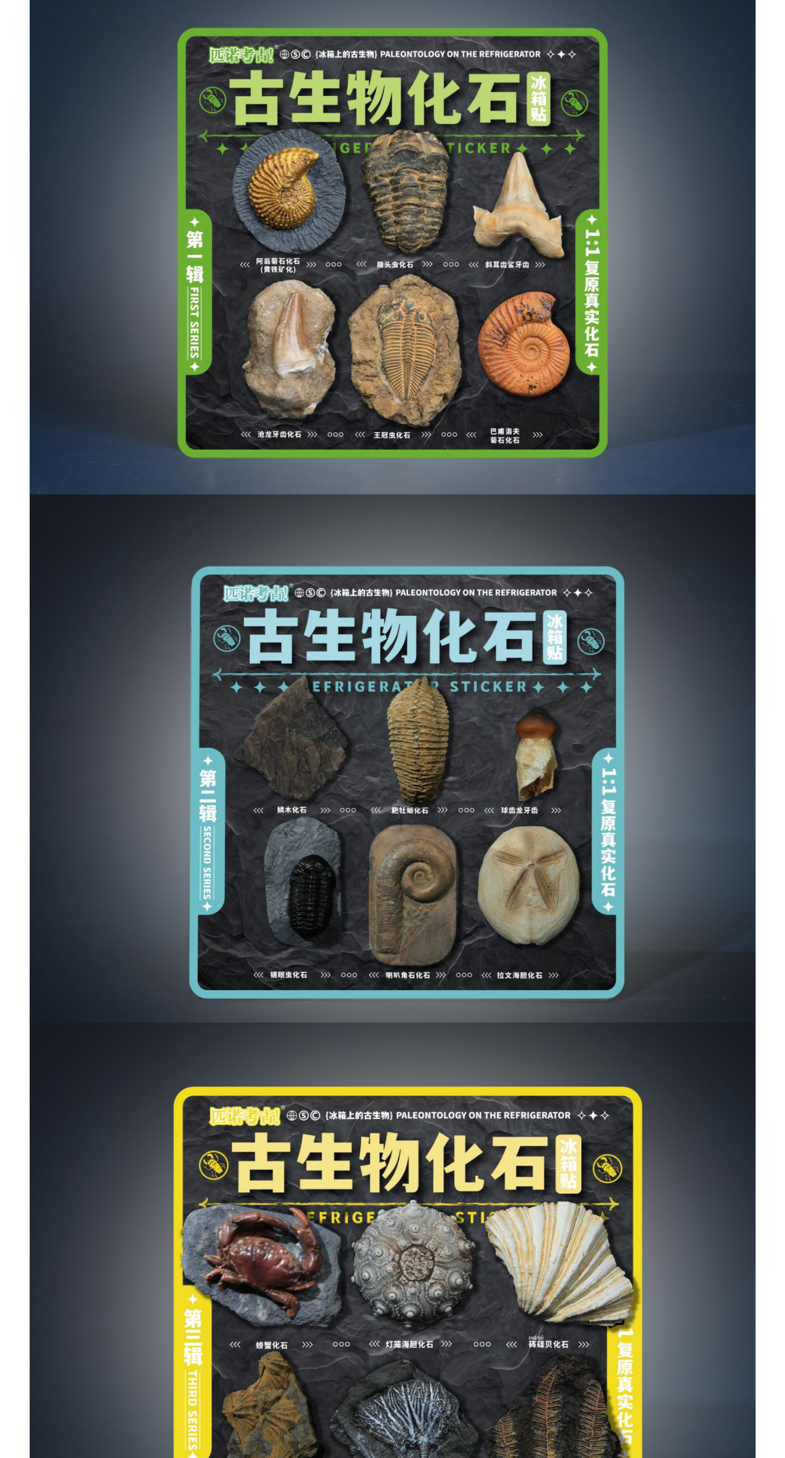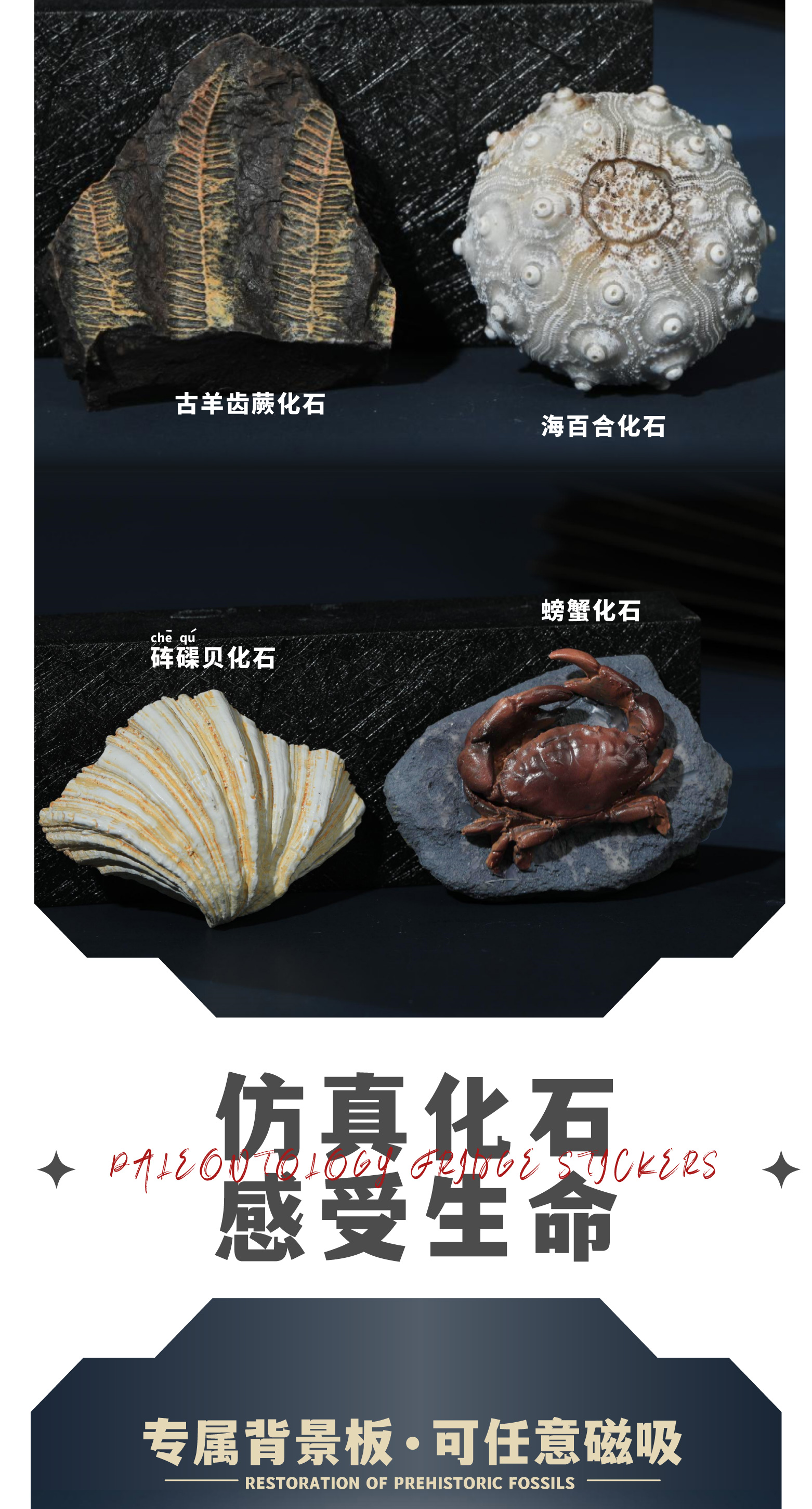 【古生物化石冰箱贴】 1:1复原真实化石 史前时代自然科学博物馆STEAM学习
