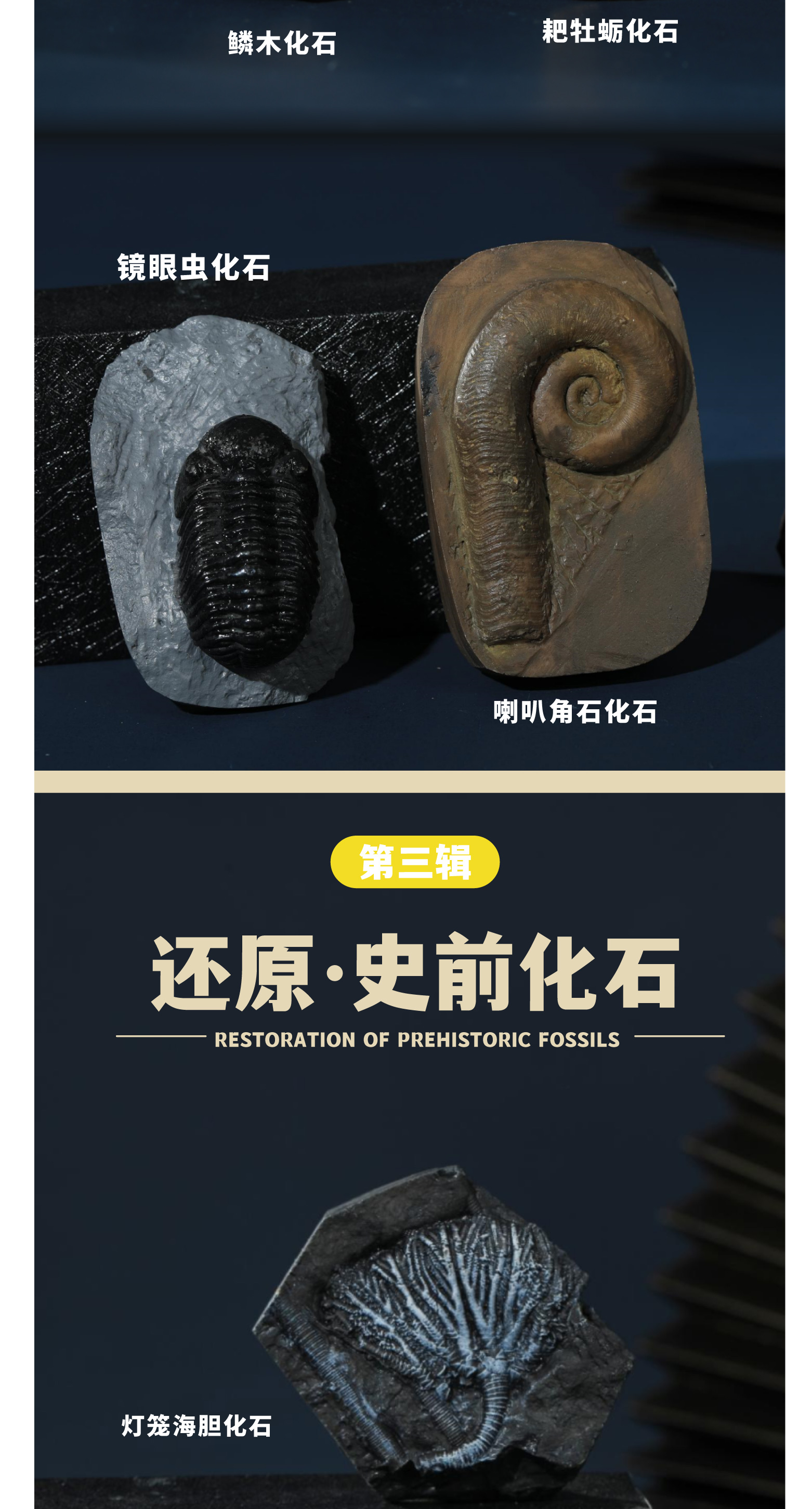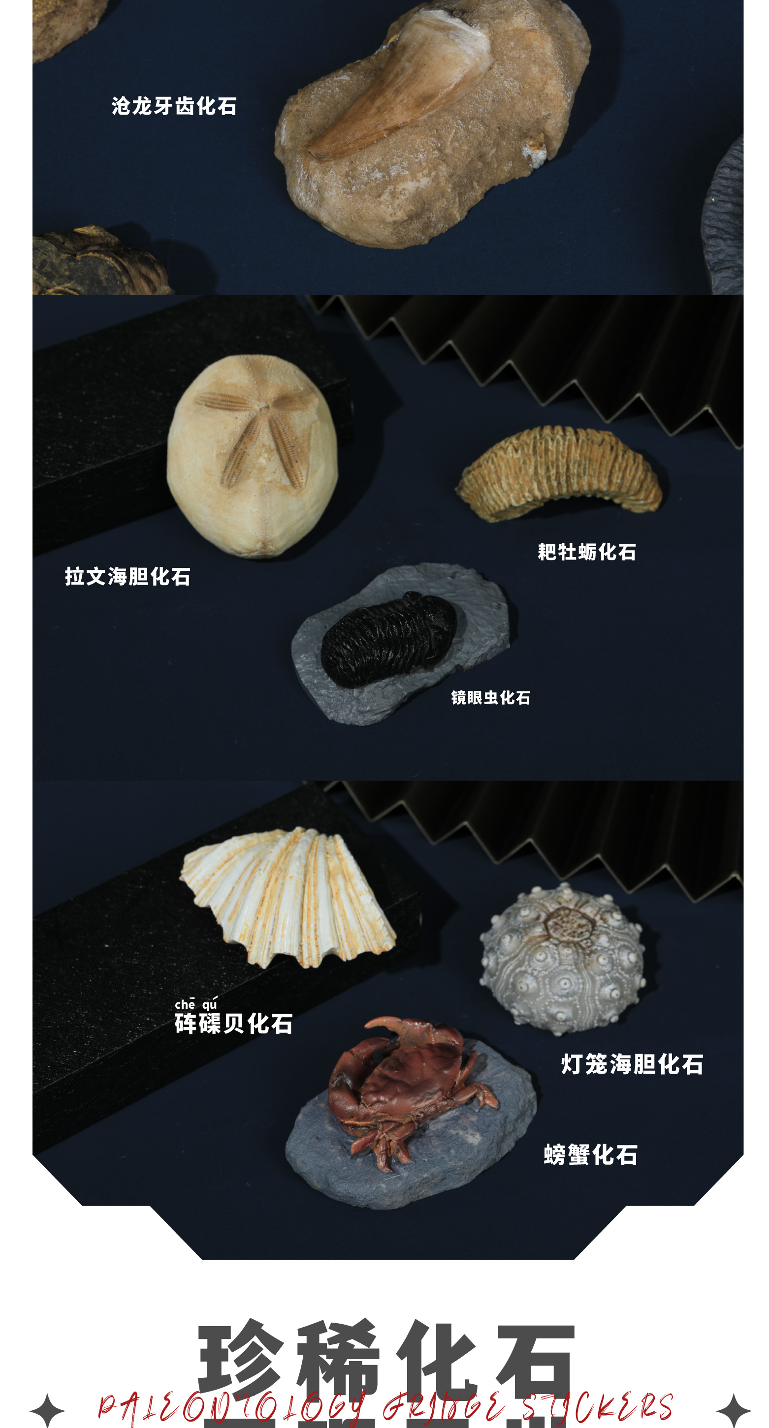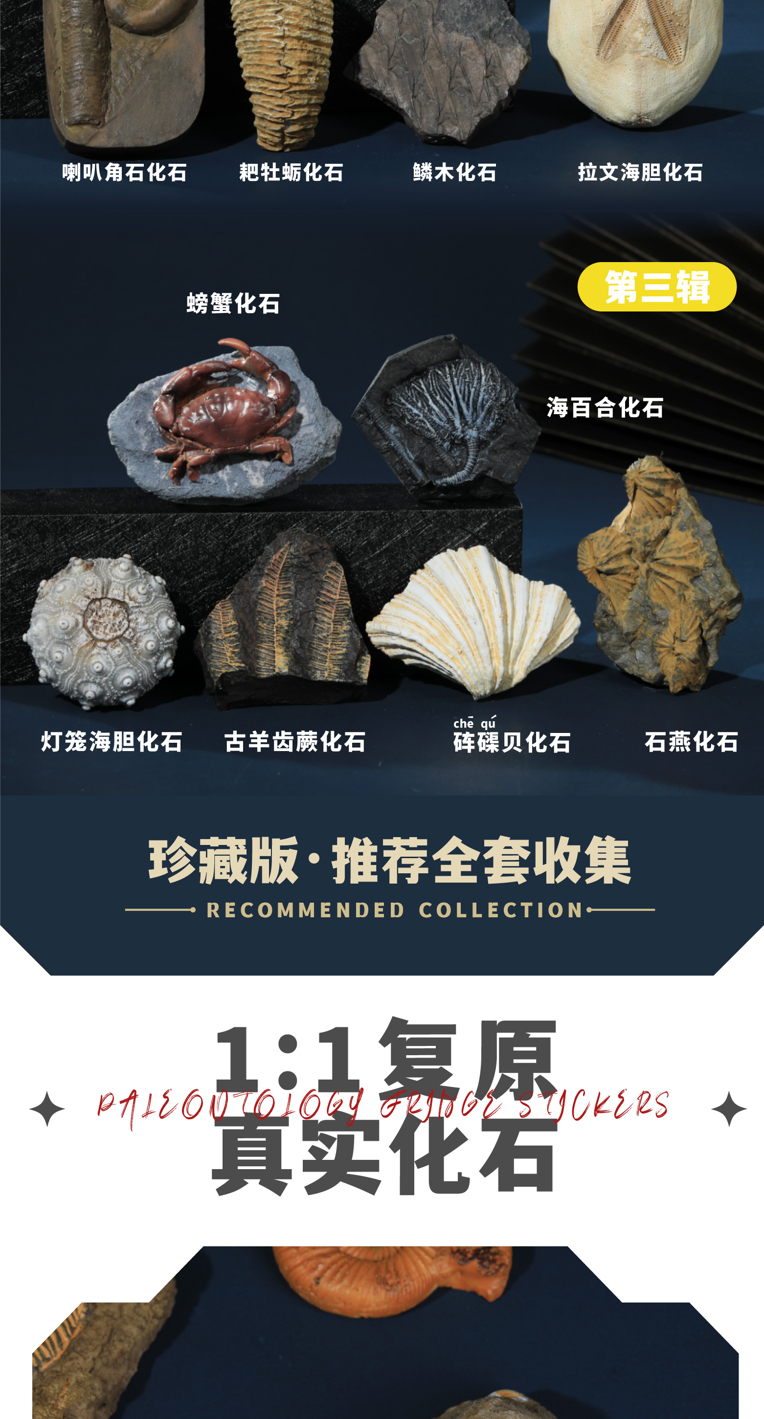 【古生物化石冰箱贴】 1:1复原真实化石 史前时代自然科学博物馆STEAM学习