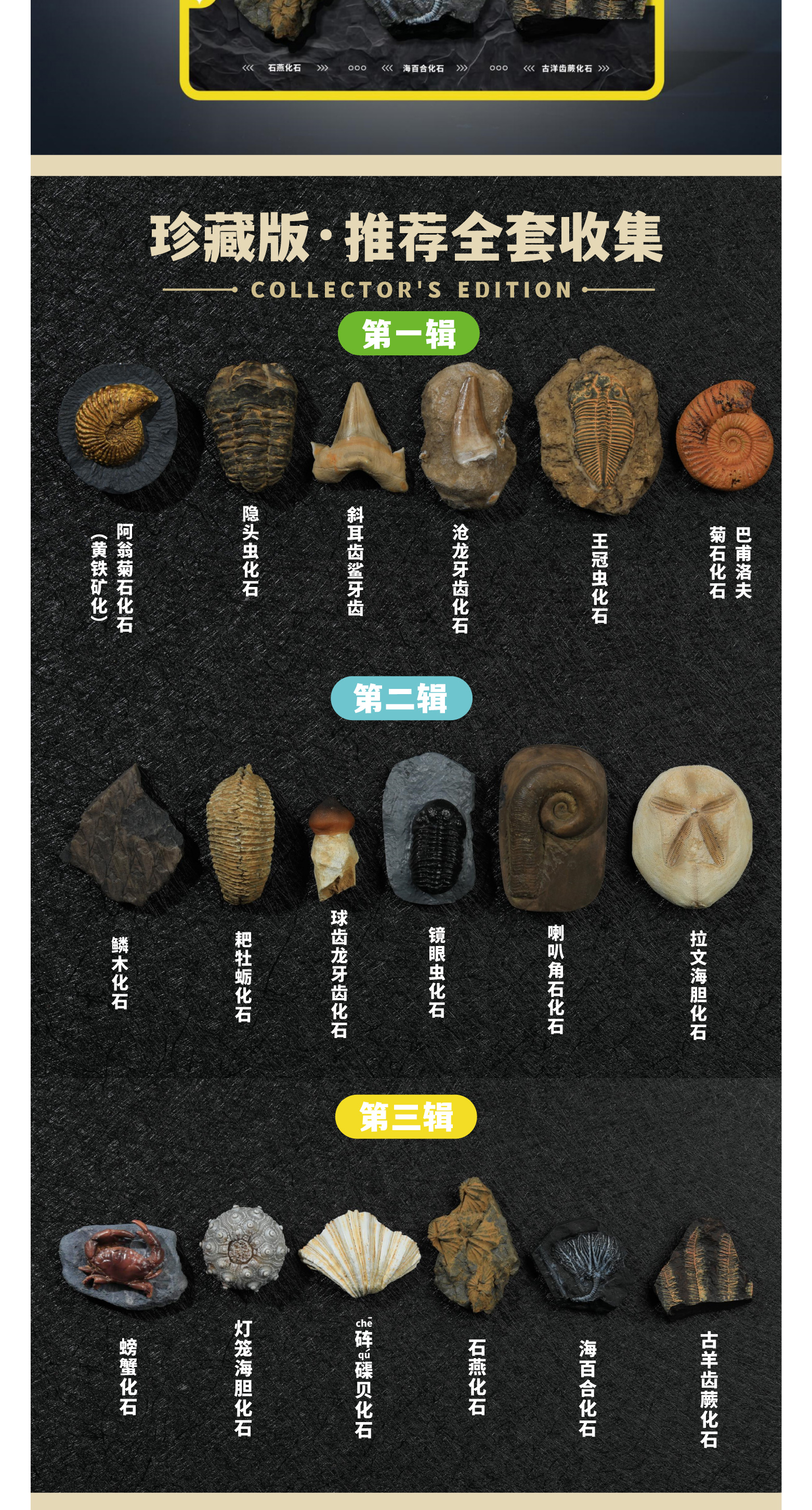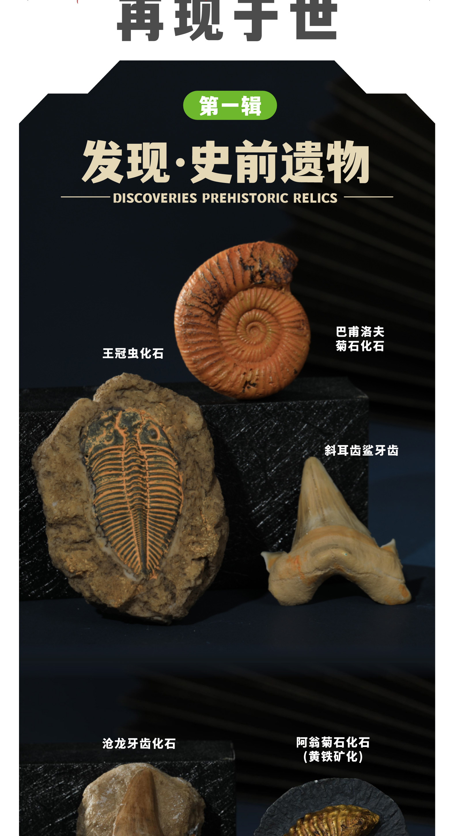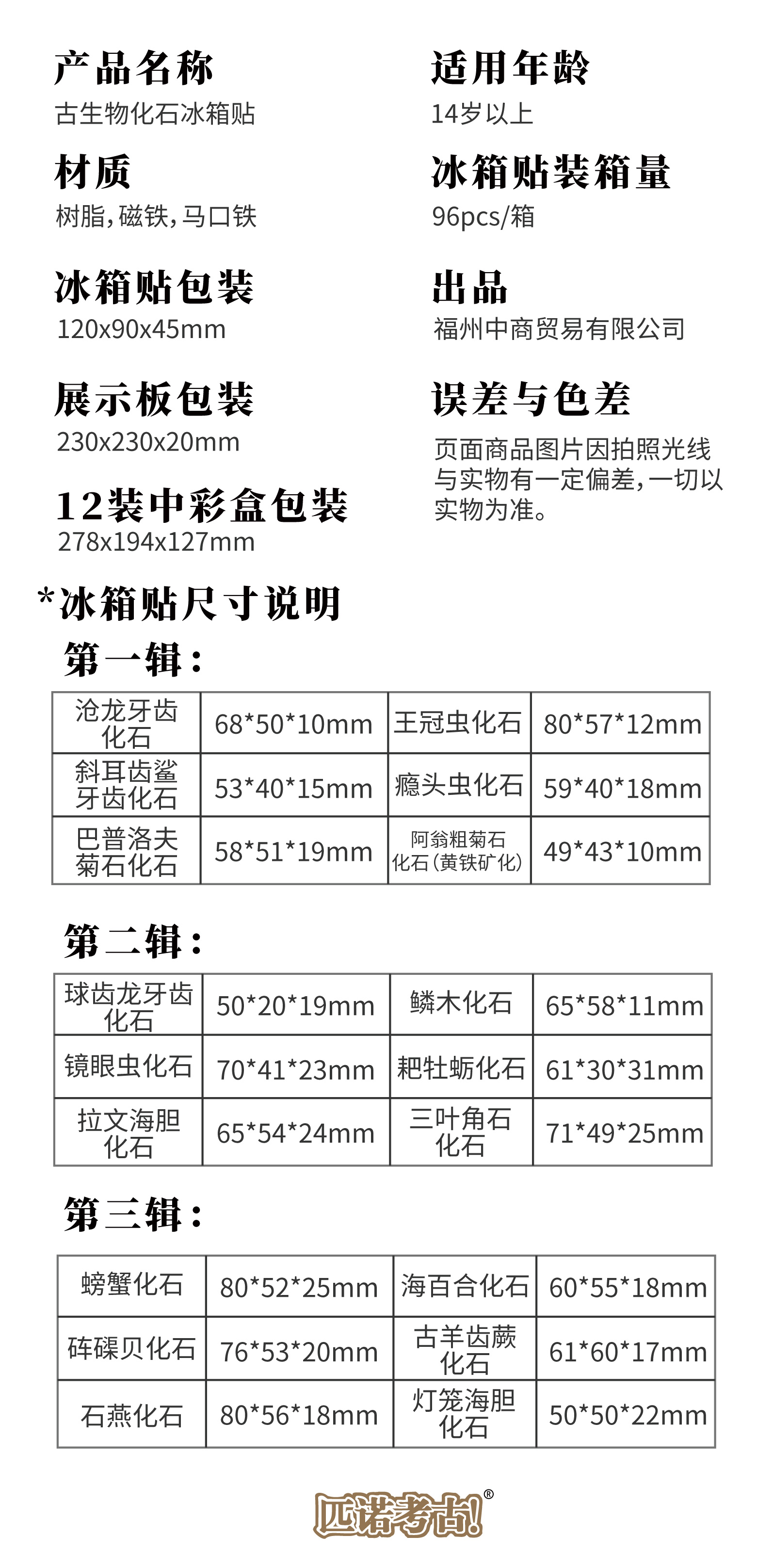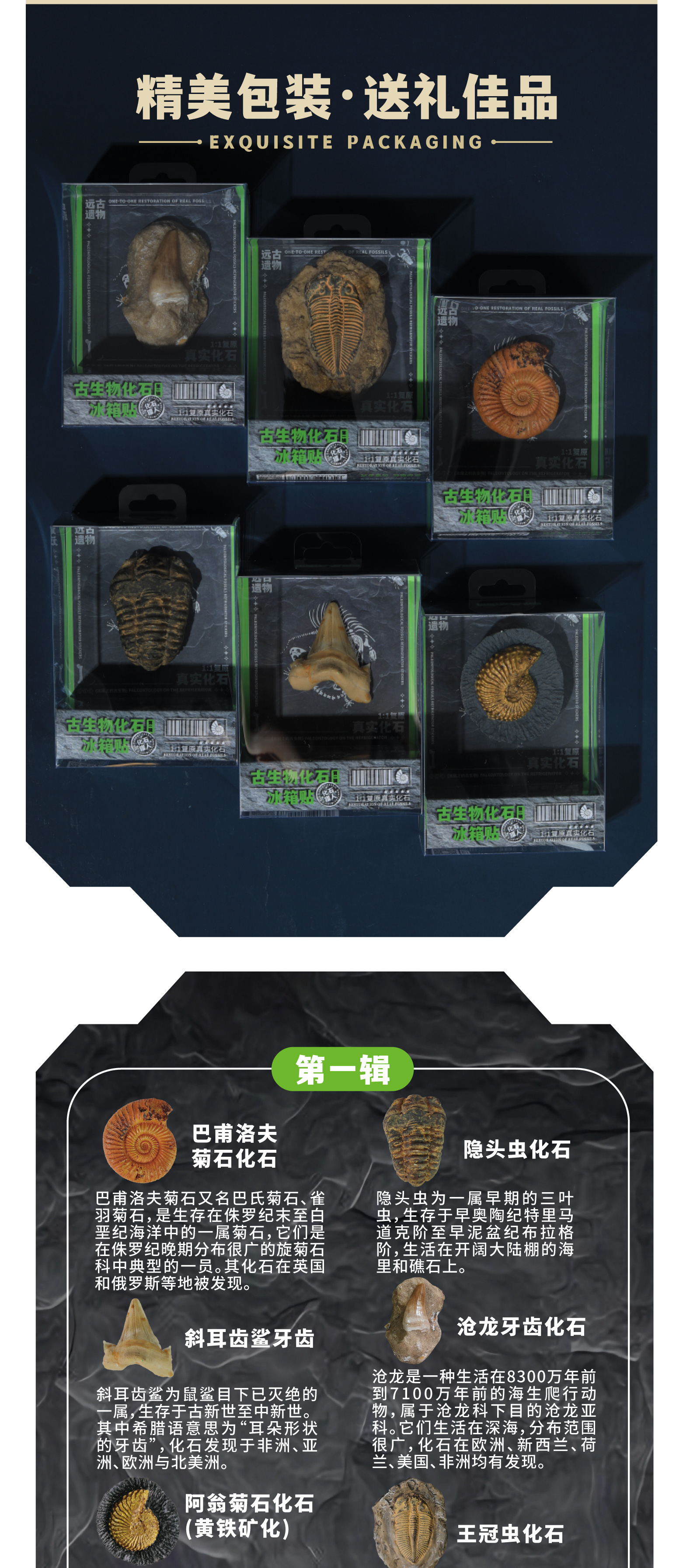 【古生物化石冰箱贴】 1:1复原真实化石 史前时代自然科学博物馆STEAM学习