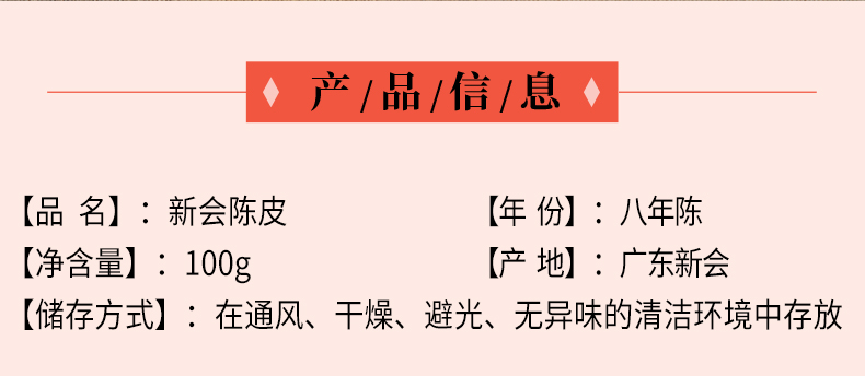 益柑柠丨新会陈皮 八年陈 经年陈化 100g 道地陈皮 果香甜香陈香显