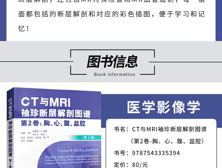 CT与MRI袖珍断层解剖图谱第2卷:胸、心、腹、盆、腔 引进版 影像医学 人体解剖图谱彩色图谱 影像断层解剖实用图谱