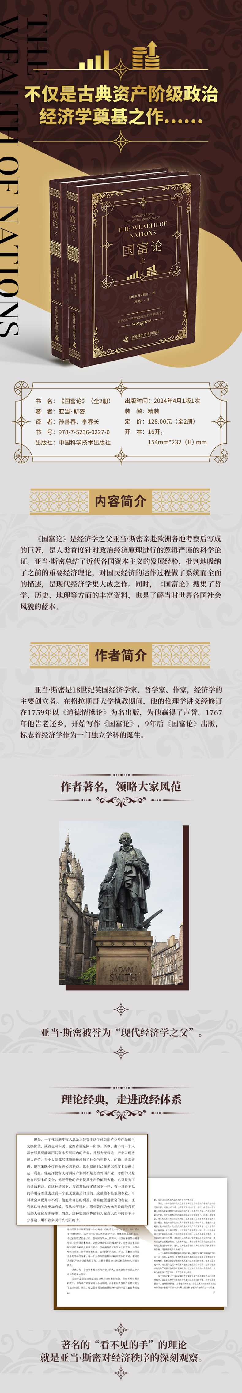1.作者著名,领略大家风范。亚当斯密被誉为;现代经济学之父。2.理论经典,走进政经体系。;看不见的手的理论就是亚当斯密对经济秩序的深刻观察。3.史料丰富,纵观社会风貌。《国富论》收集的资料涉及哲学、历史、地理等诸多方面。4.译本通俗,轻松拜读巨著。译本保持作品原貌,追求语句通顺,减少读者阅读的障碍。