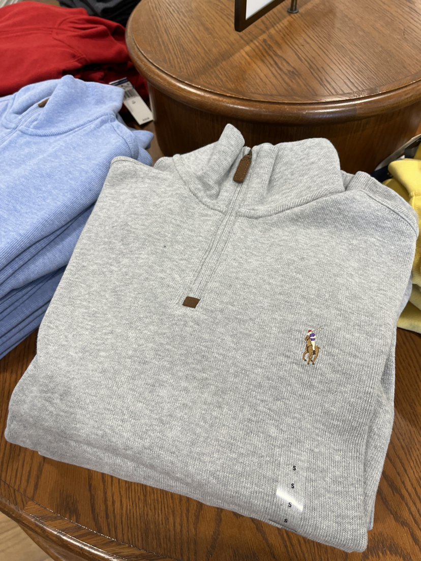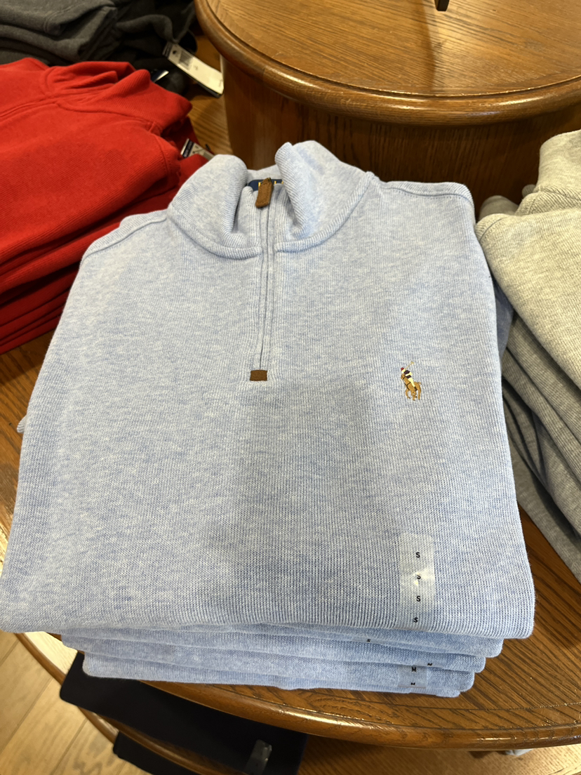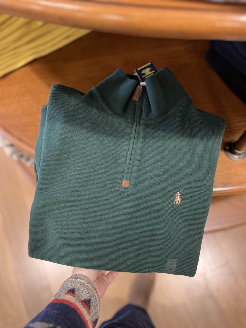 polo拉夫劳伦男士半拉链毛衫可以准备起来啦!这款全棉柔棉材质超级柔软,半拉链搭配衬衫也很好看,拉链是麂皮头看起很有质感,两种穿搭,立领或者翻领穿,女生穿更好看~