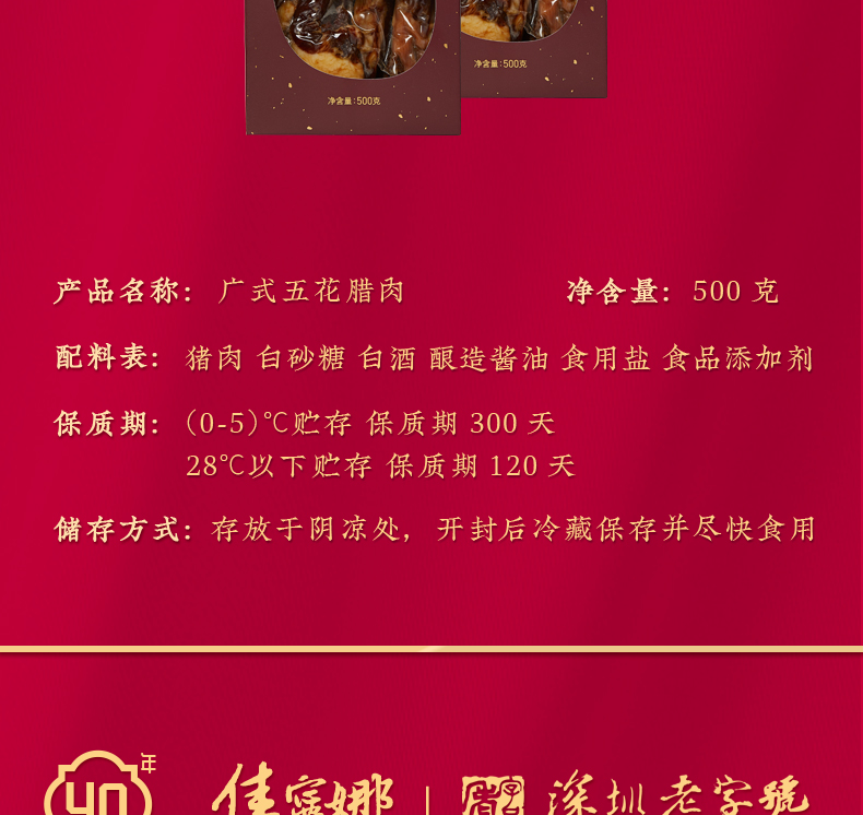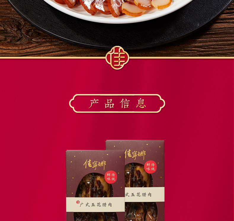 佳宁娜酒楼 广式五花腊肉腊味广东特产深圳老字号500g