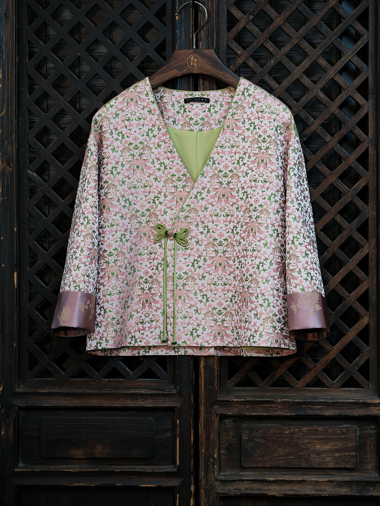 盛唐婧 |中式国风宋锦缠枝花交领外套