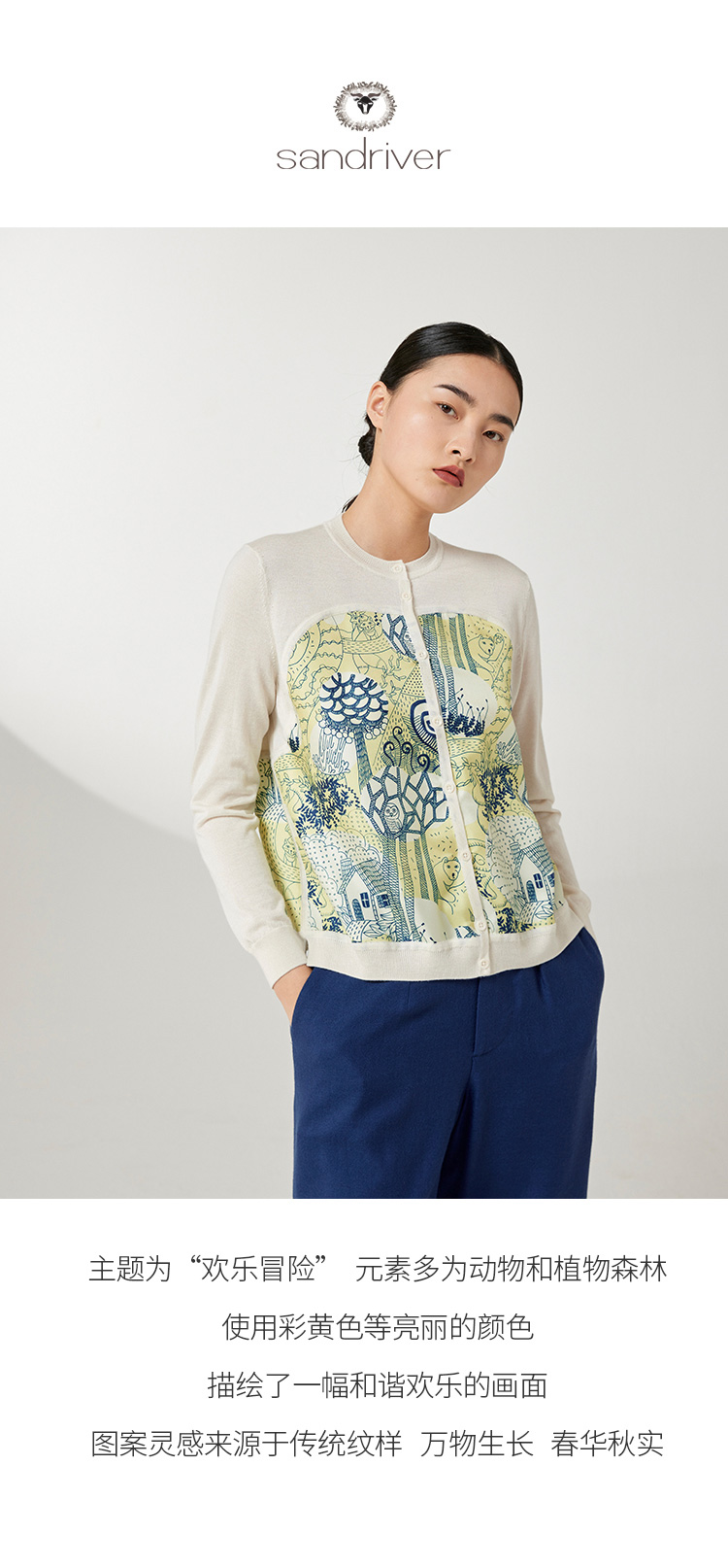 历年在巴黎时装周亮相,享誉世界的艺术羊绒品牌[Sandriver 沙涓]由羊绒布道者郭秀玲女士创立。阿拉善自有牧场纯种羔羊绒,日本国宝设计师小筱顺子,上海自有基地精工细作。承载羊绒情怀,坚持匠人品质。