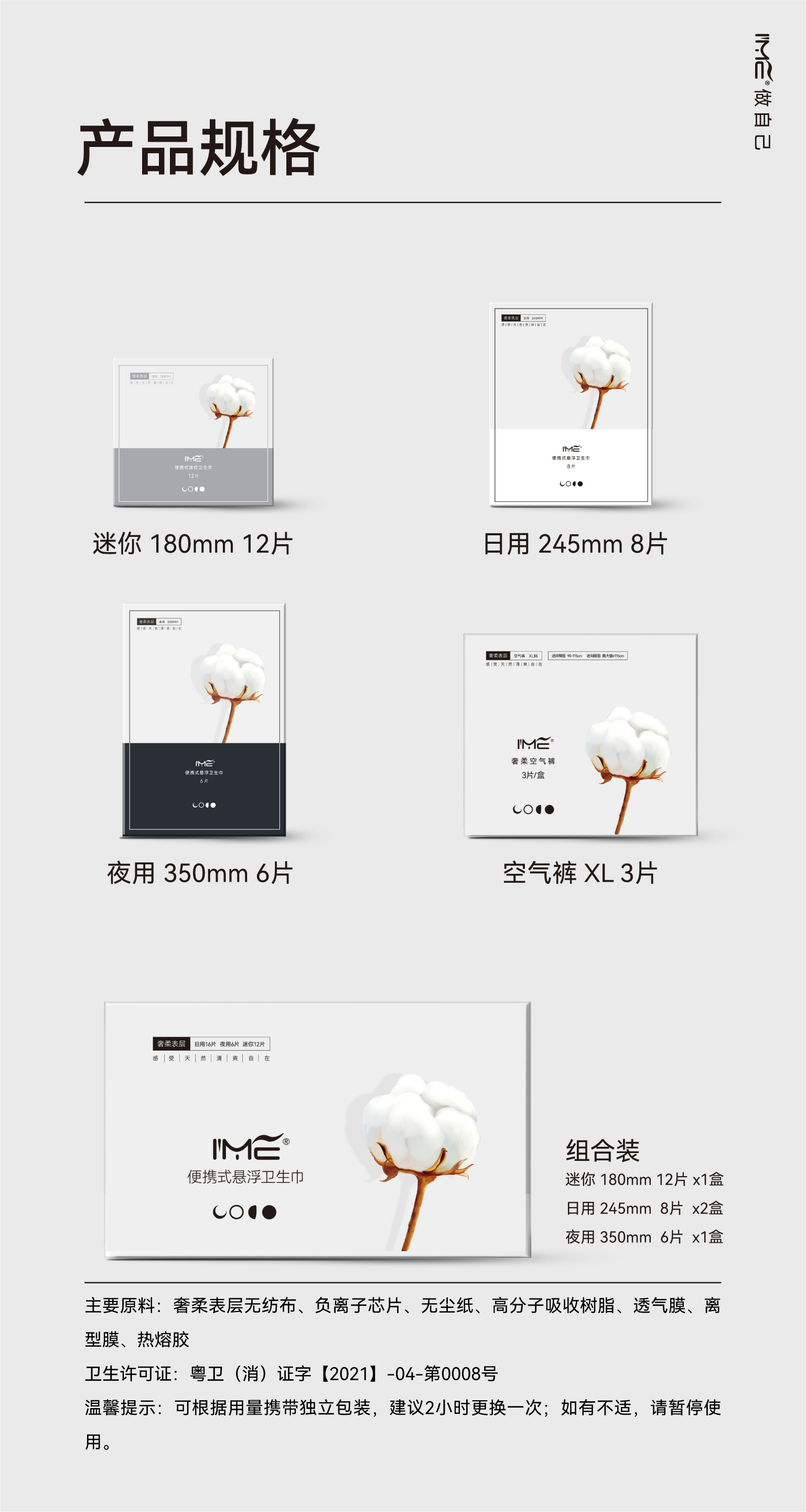 【2025新升级IME便携独立悬浮卫生巾】日用夜用护垫套装空气裤安睡裤无荧光剂无甲醛不致敏超薄无感