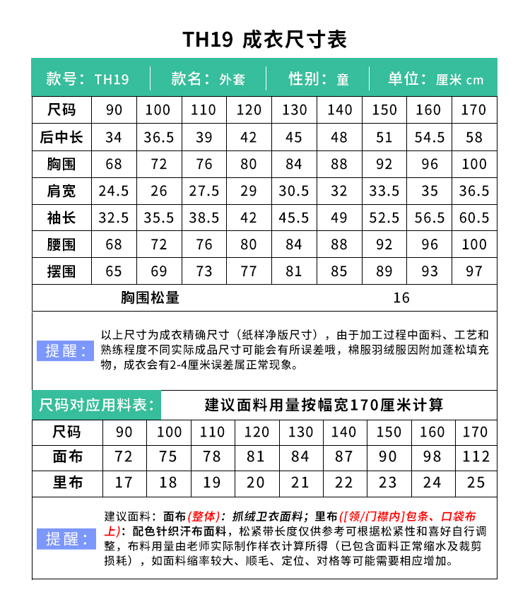 裁缝学苑TH19童装修身加绒保暖上衣外套纸样儿童运动卫衣校服内搭样板