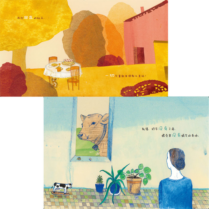 和一个人的这种联系越紧密,当他离开或不在的时候,我们就会格外强烈地想念他。他可能是我们的父母,爱人,好朋友,宠物狗,或者是一只毛绒兔子。书中的文字柔美而充满韵味,有意识地表达出:即使失去了这样的“你”,我们的生活仍然可以继续,只是没有原来那么美好,那么完整。而有一天,我们的思念能够迎来重逢。
