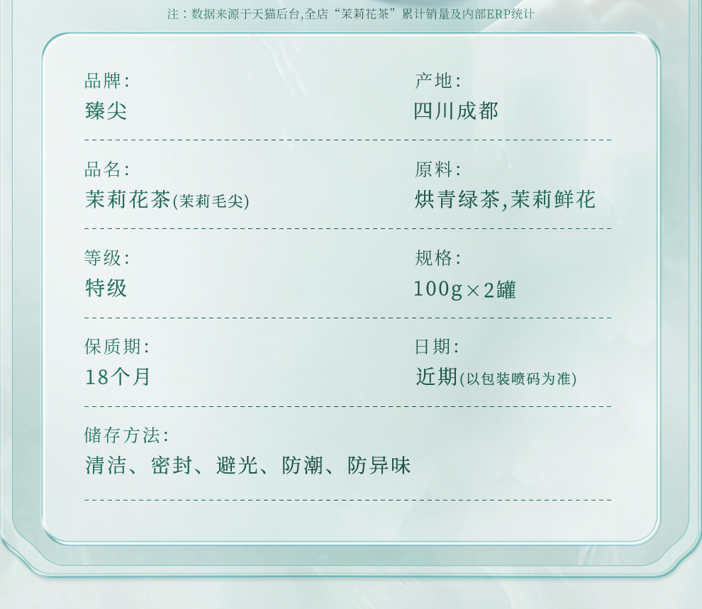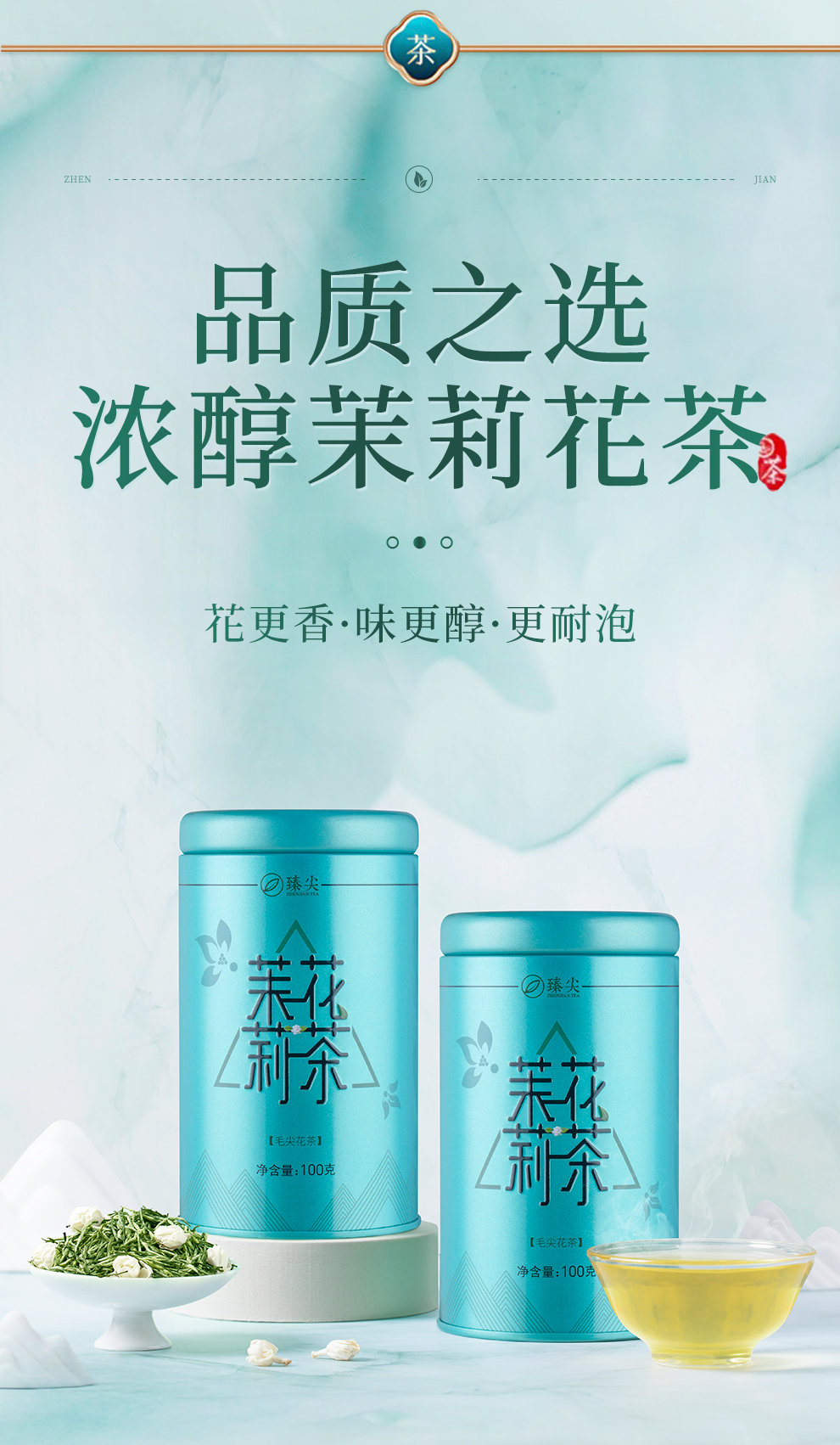 【臻尖-花毛尖】特级浓香型毛尖茉莉花茶100g*2罐