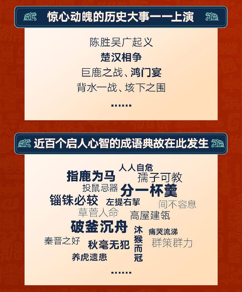 一桩桩耳熟能详的历史事件应接不暇:陈胜吴广起义、楚汉争霸、鸿门宴、霸王别姬……