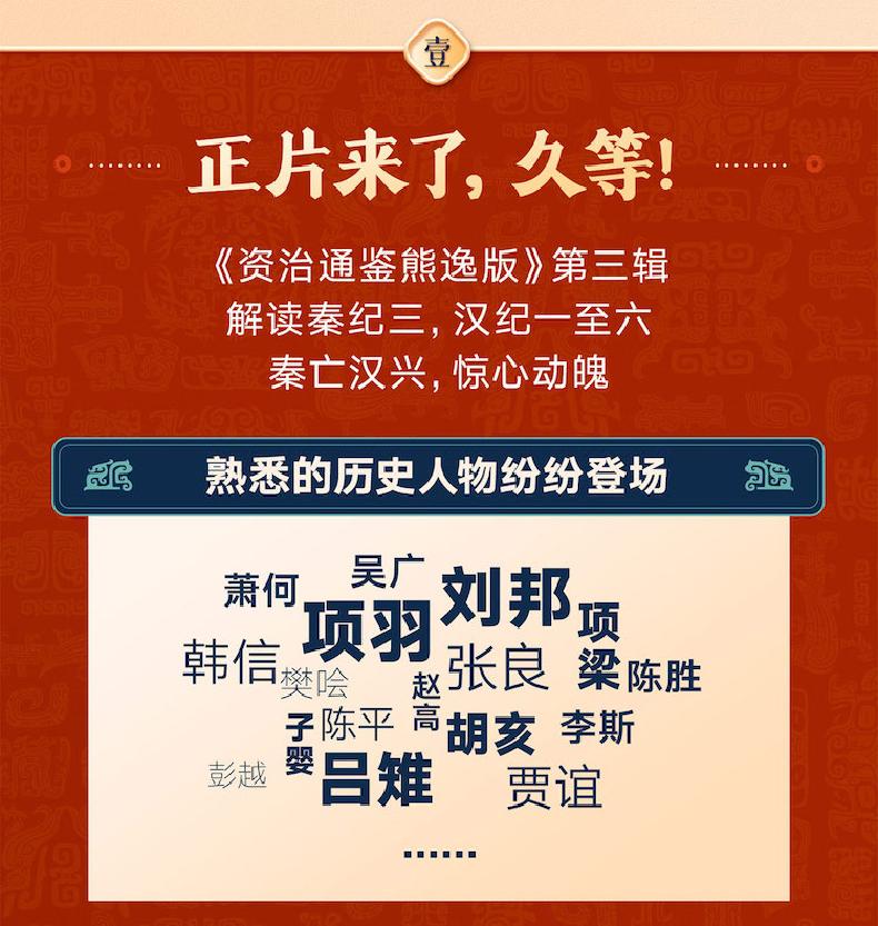 《资治通鉴熊逸版》第三辑开始了。前两辑的内容,结束了一段完整的战国史,看秦始皇如何缔造了一个前无古人的郡县制帝国,又如何把中央集权的政治结构推上了一个有的高度。但结果,其兴也勃焉,其亡也忽焉,偌大一个秦帝国,忽然在极盛时期土崩瓦解,传国仅二世,历时14年。这种戏剧性的变化,在当时应该超出了有人的预料。