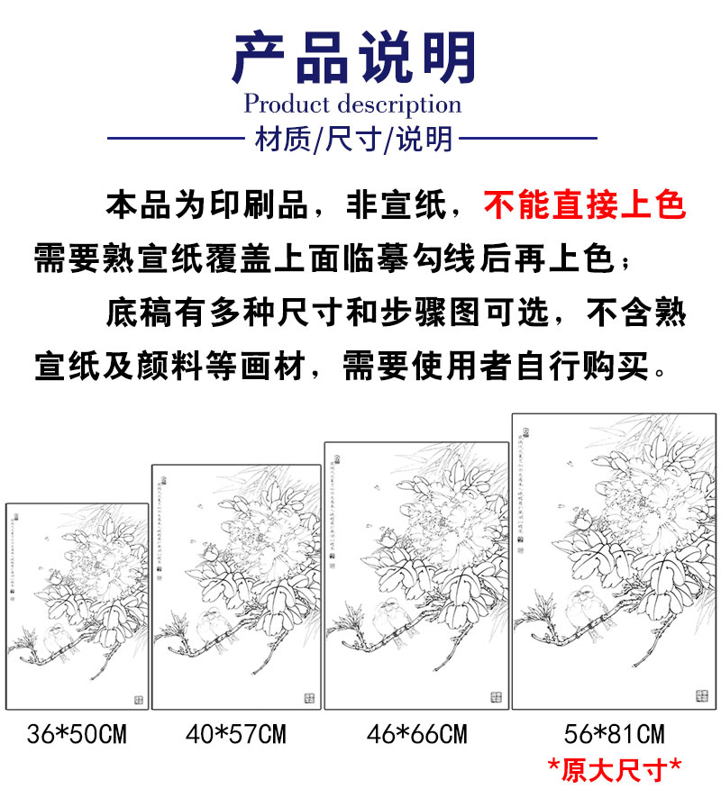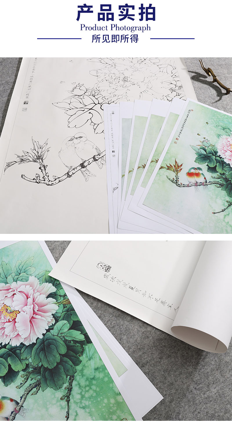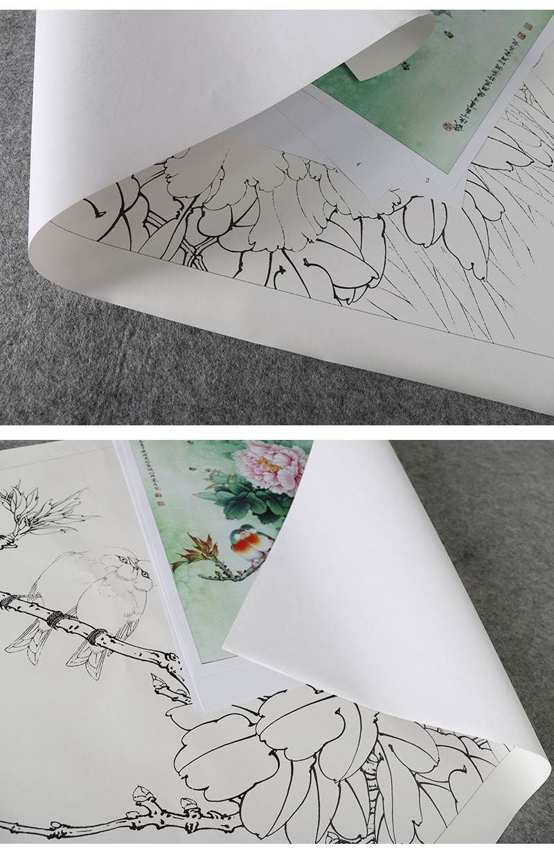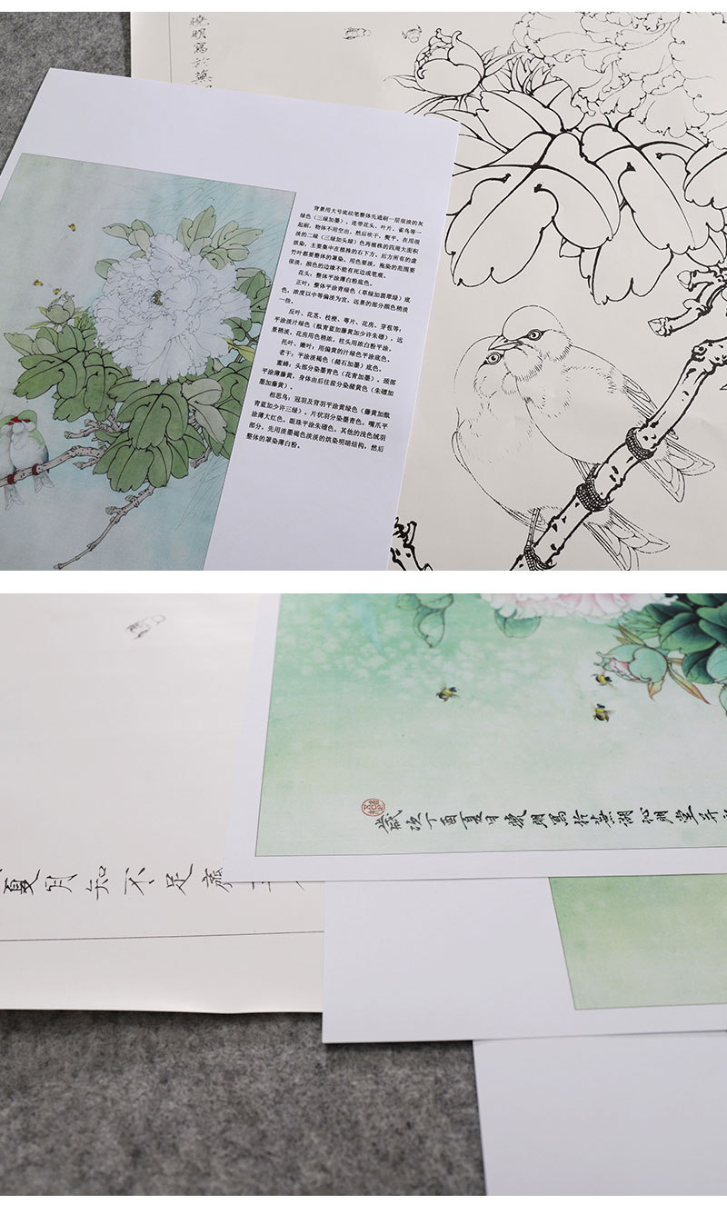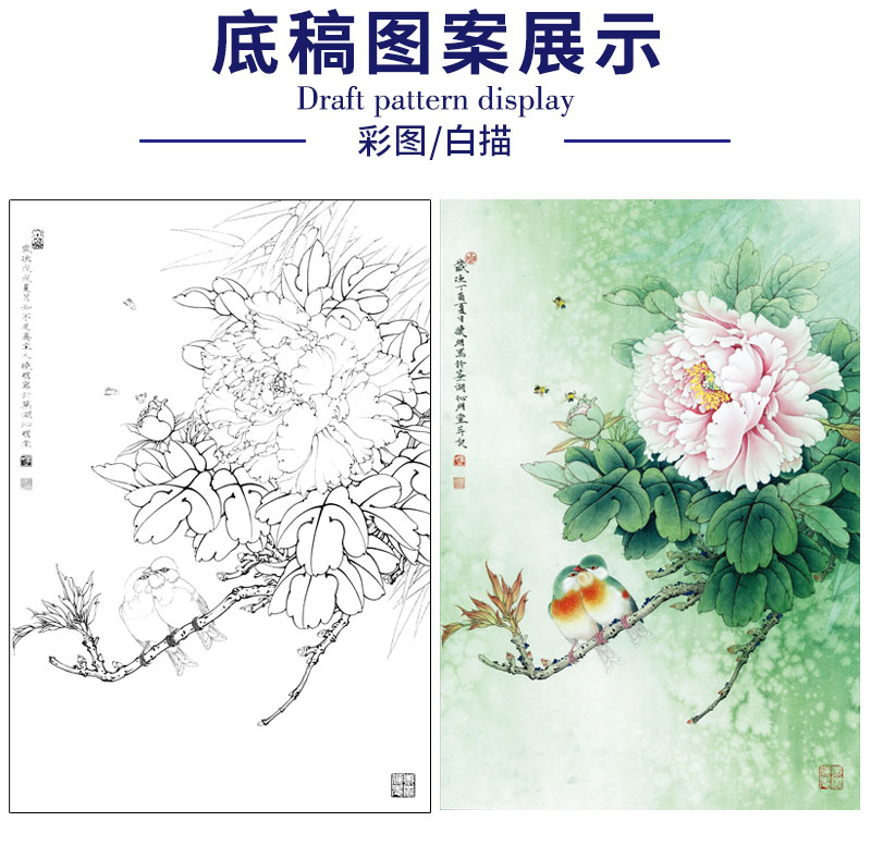 【有步骤、大彩图】李晓明工笔画白描底稿《相思瑶池春》牡丹相思鸟初学者临摹花鸟线稿KD20