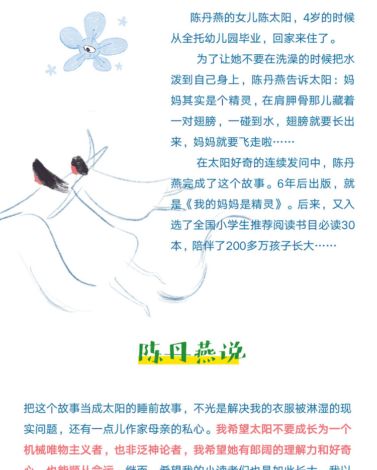 迄今为止中国zui好的儿童文学幻想小说、全国小学生基础阅读书目《我的妈妈是精灵》全新续篇,讲述精灵的女儿陈淼淼发现自我、寻找梦想的成长故事——认识到自己的独一无二,就是孩子学会爱自己的开始。