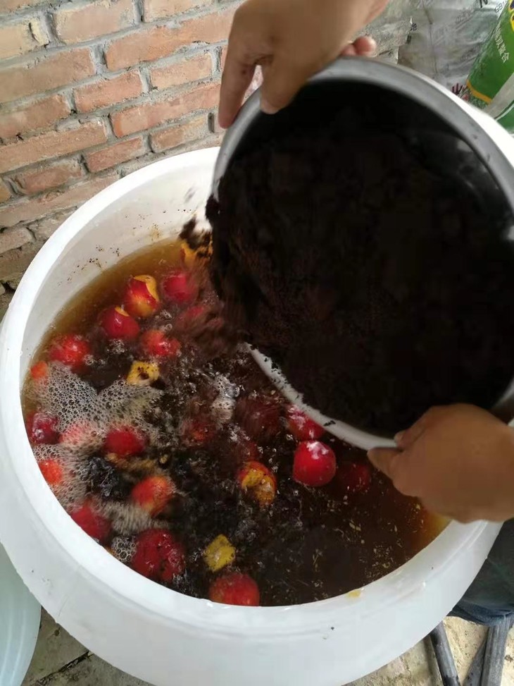 桃树施用完全腐熟、发酵羊粪,桃子酵素,腐殖酸,酵素渣。