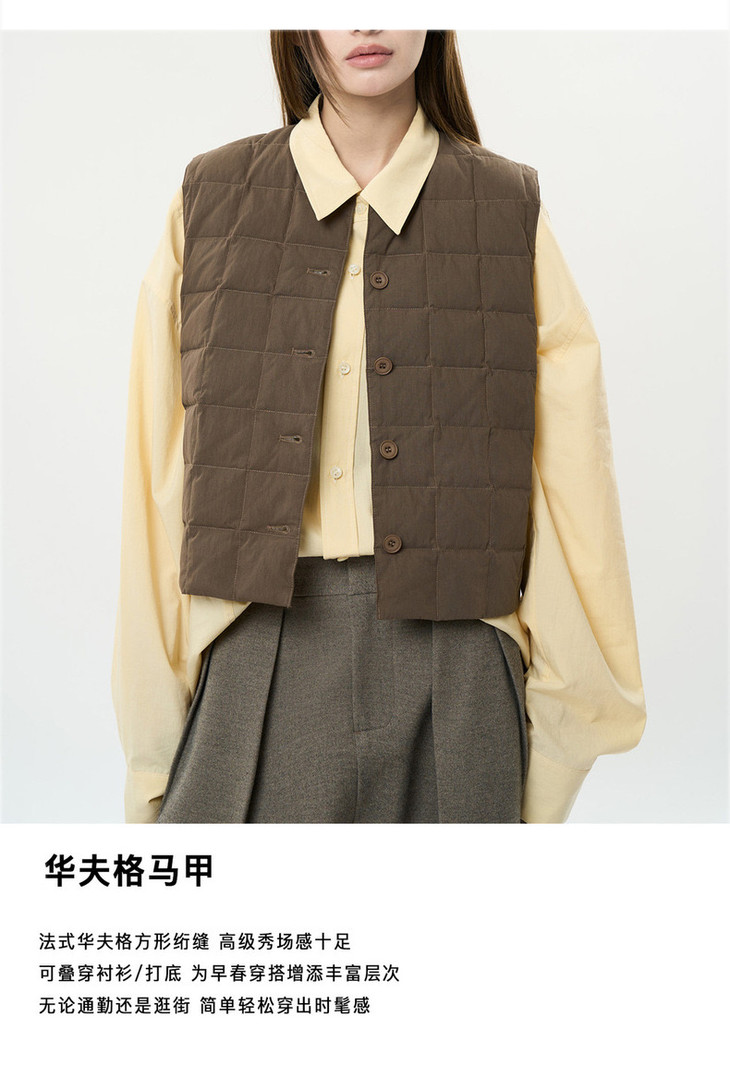 现货 臣禾 【华夫格马甲】文艺范羽绒背心【90鸭绒】JZ244070952