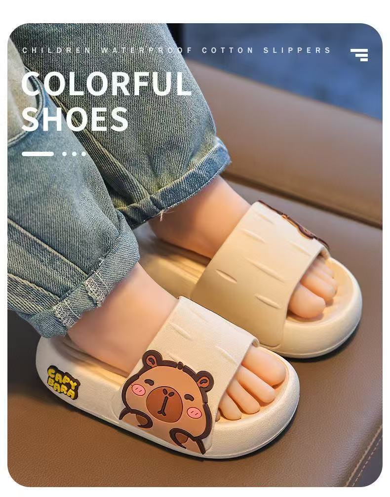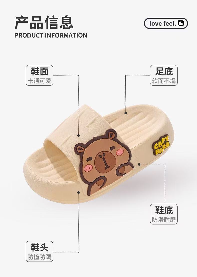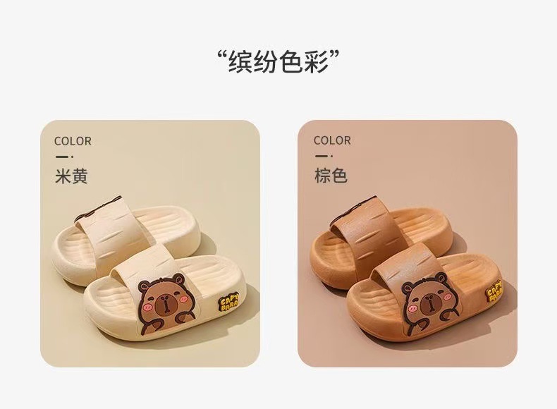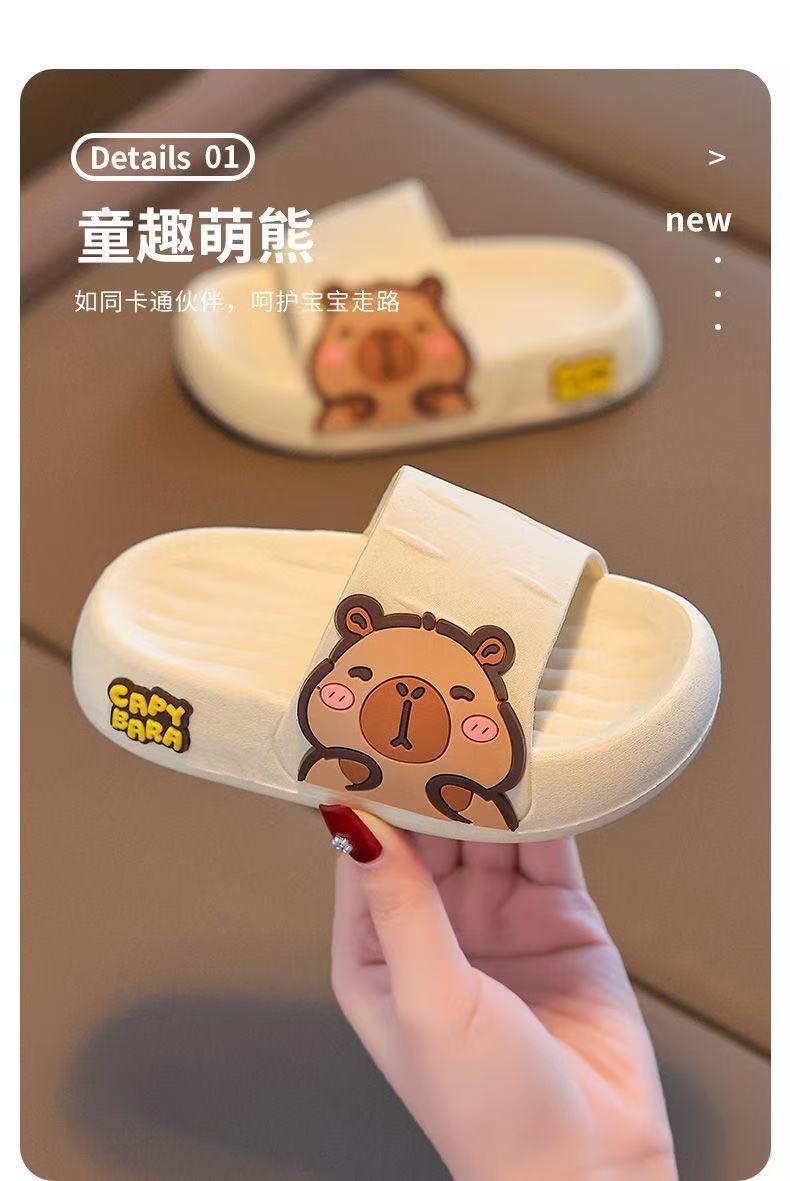 【如同卡通伙伴,呵护宝宝走路】卡皮巴拉儿童拖鞋 女童居家新款 浴室防滑软底中大童 宝宝男童拖鞋-QQ
