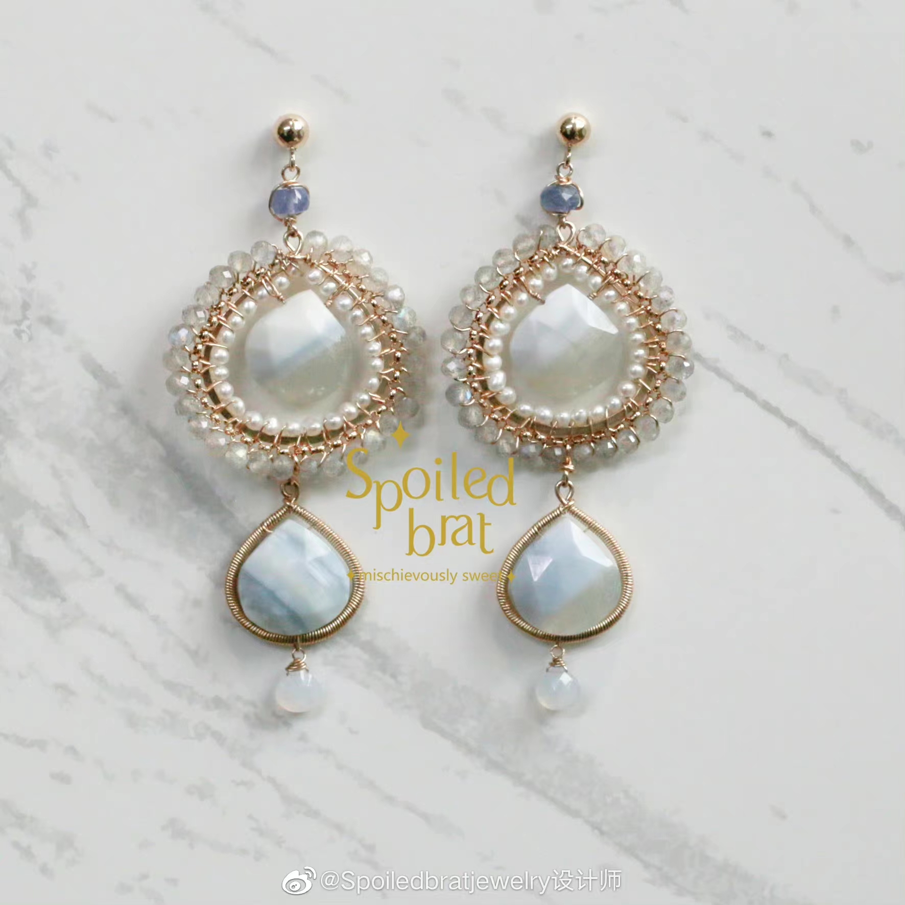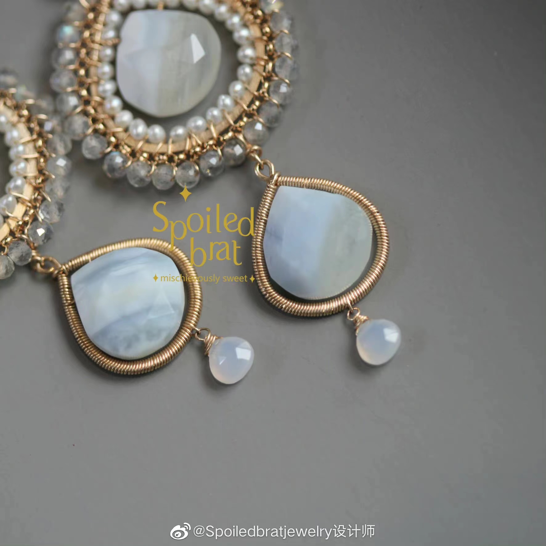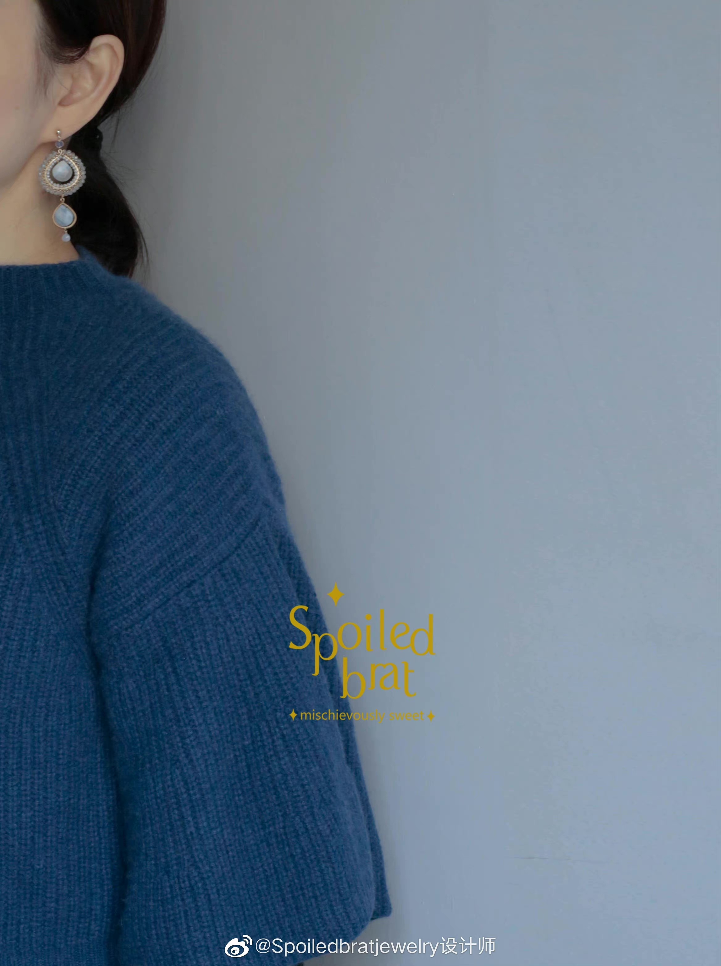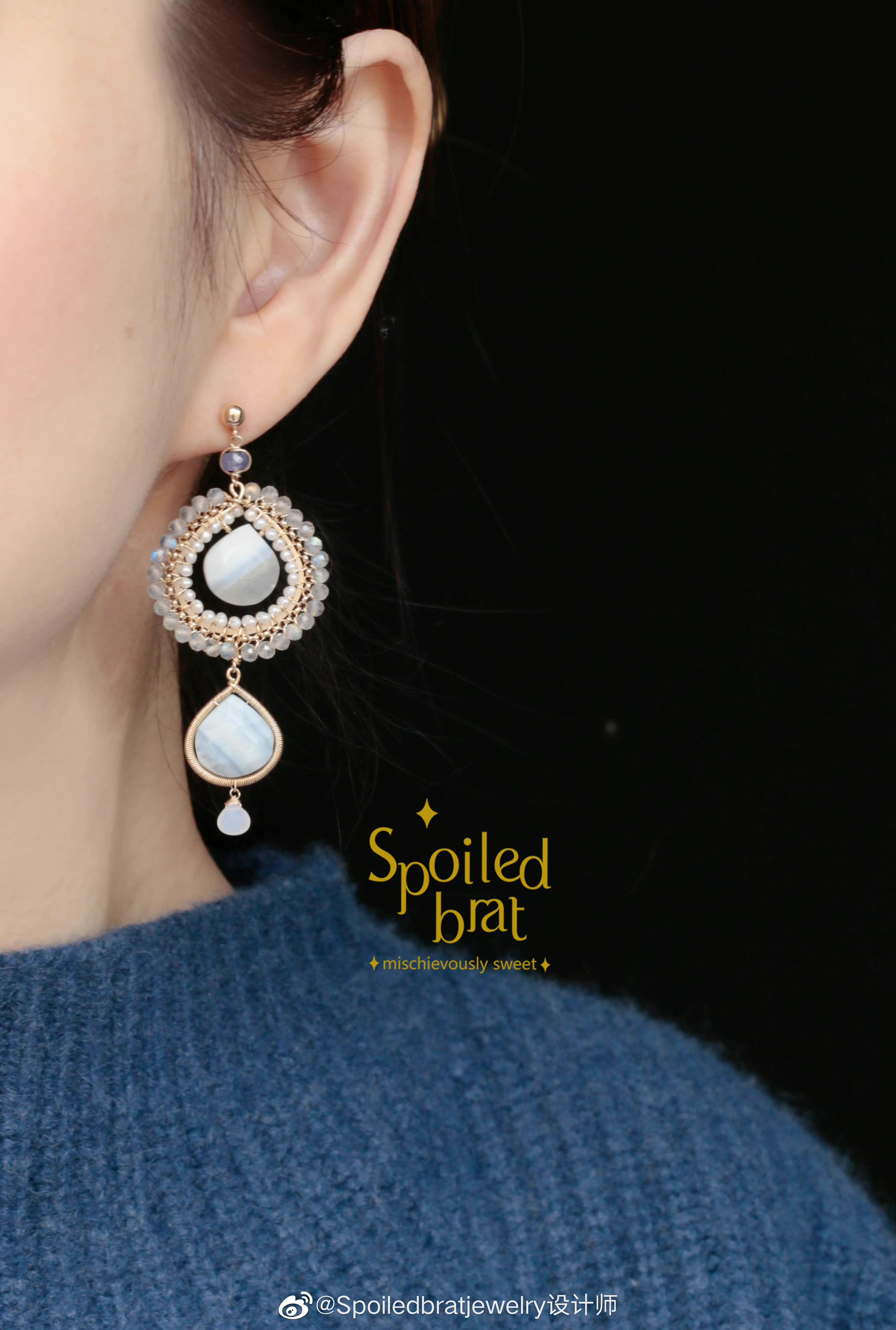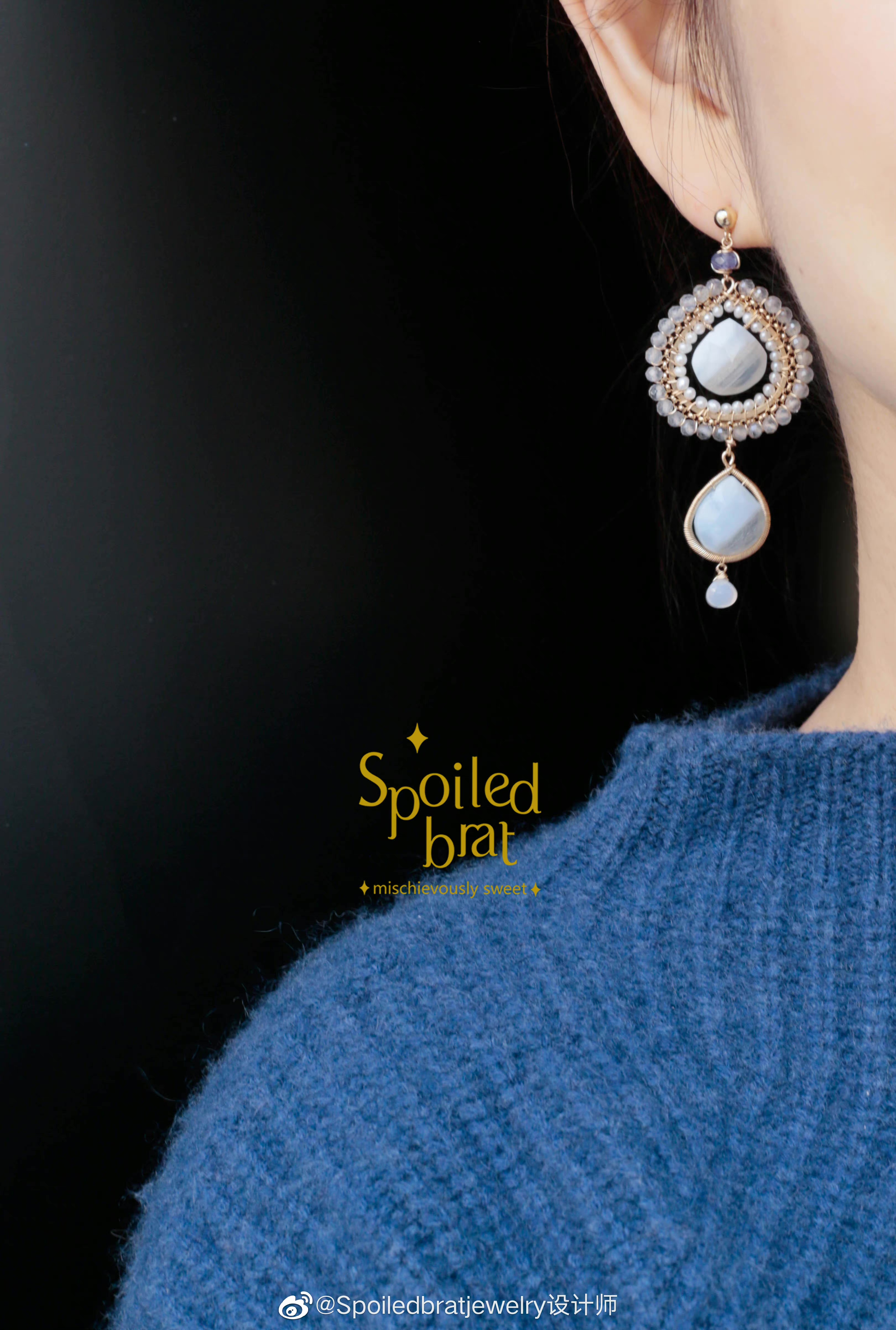 SpoiledBrat Jewelry 戏剧系列 蓝色斜纹欧珀 多层水滴型耳环