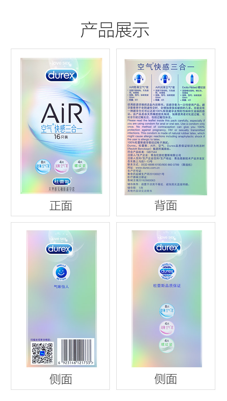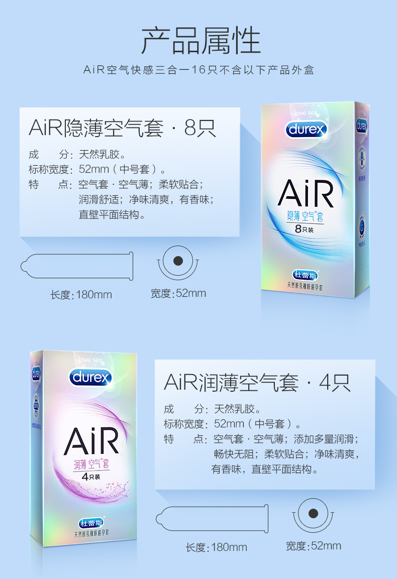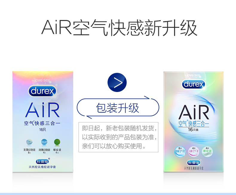 杜蕾斯 AiR尊享三合一16只装 至薄8+润薄4+螺纹4