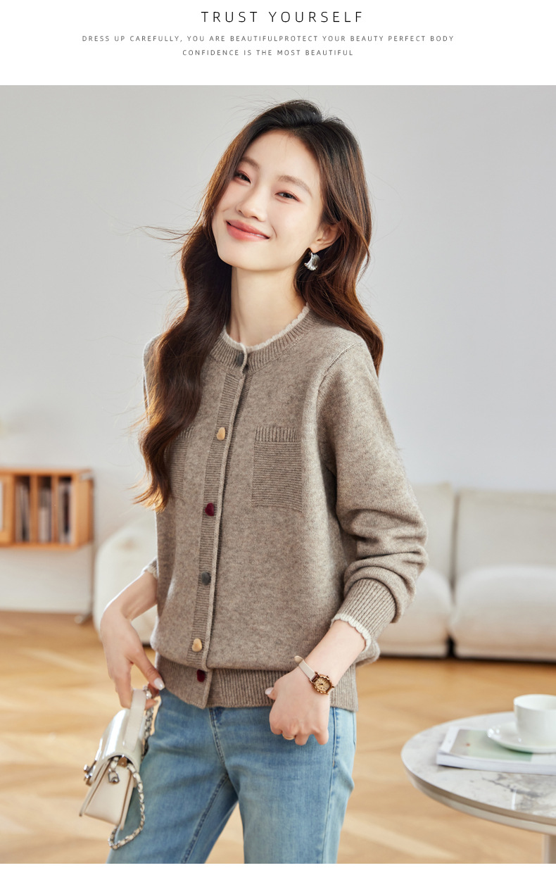 CC-QL-8572小香风针织开衫女短外套2025春秋新款圆领毛衣外搭小个子彩扣上衣