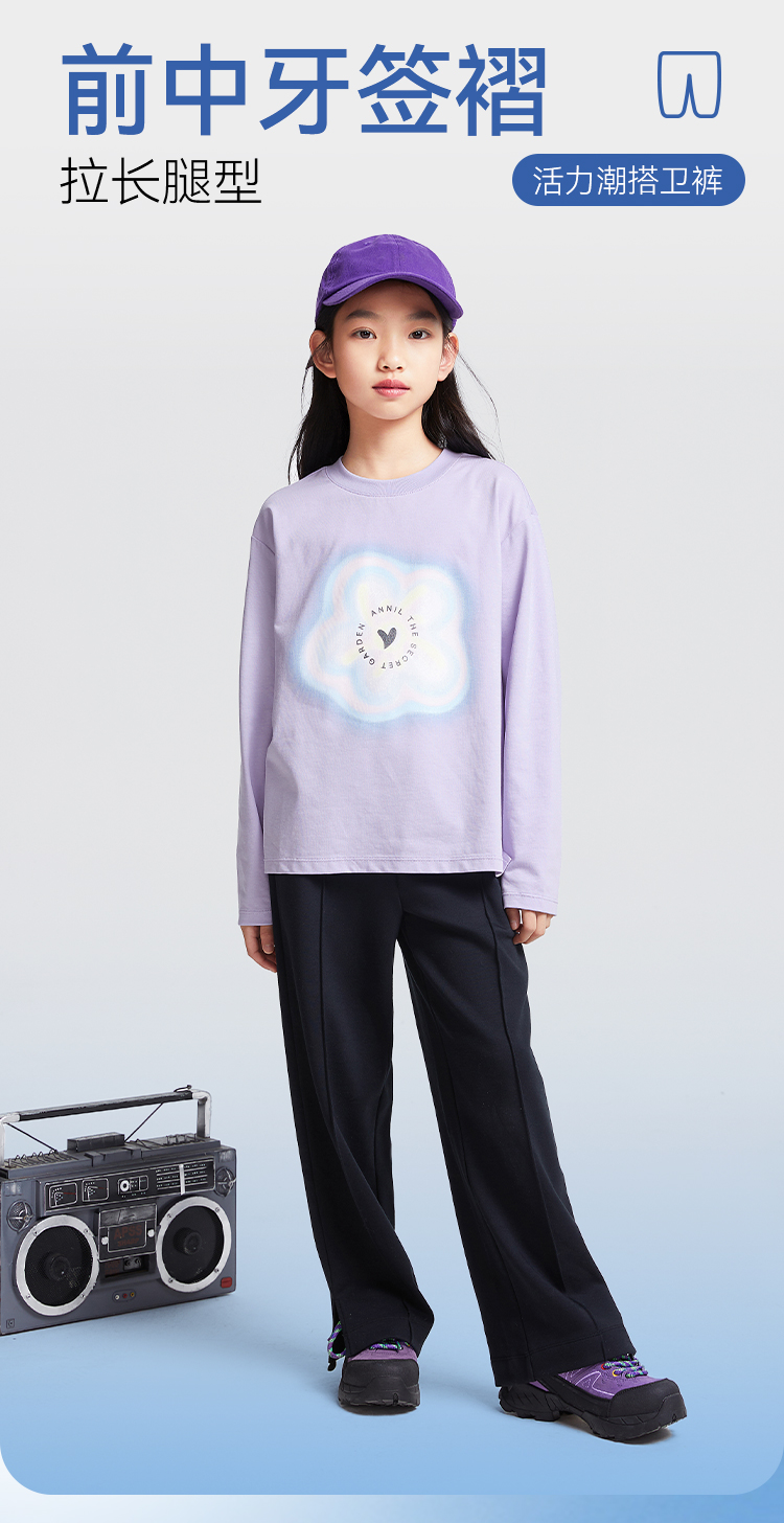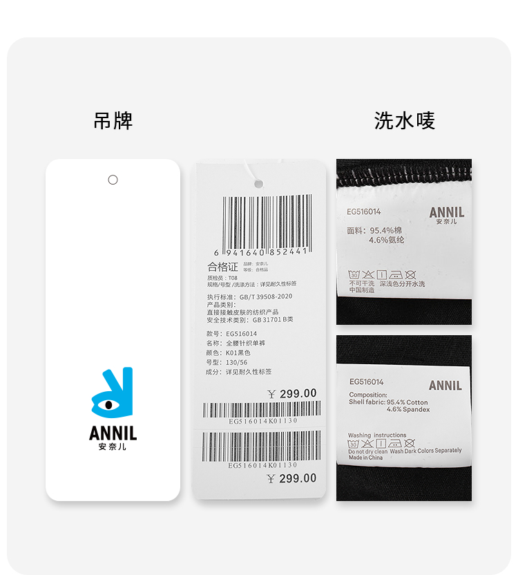 女童全腰针织单裤春季新款安奈儿童装EG516014