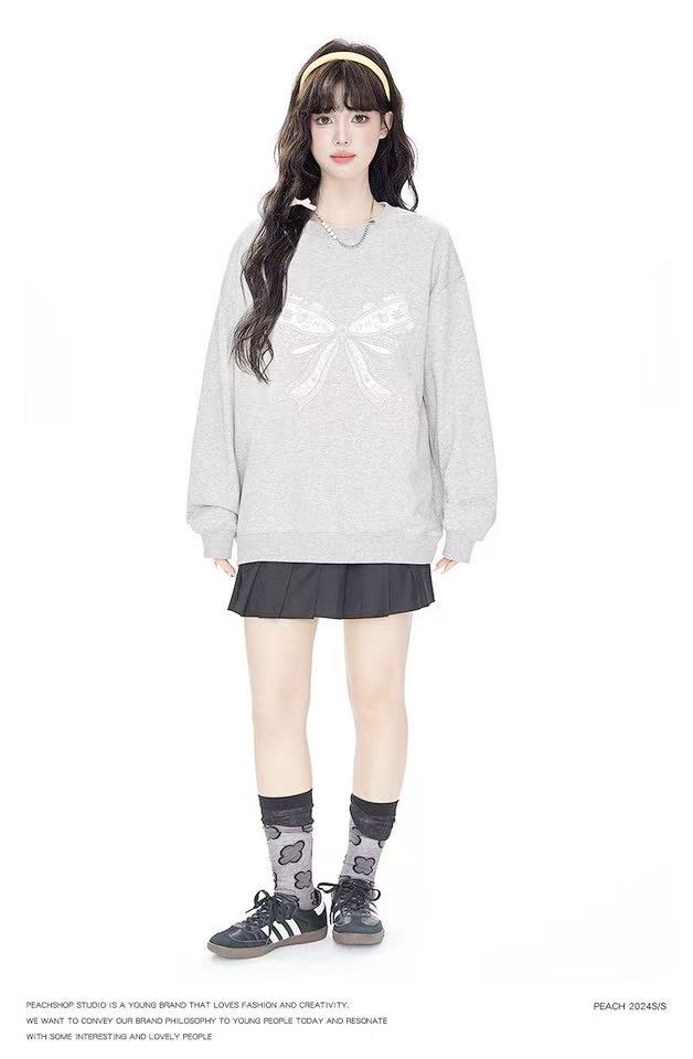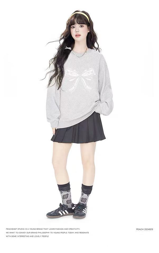 🔥🔥【潮牌卫衣】圆领牛奶绒~蝴蝶结印花加绒牛奶绒卫衣-喜出