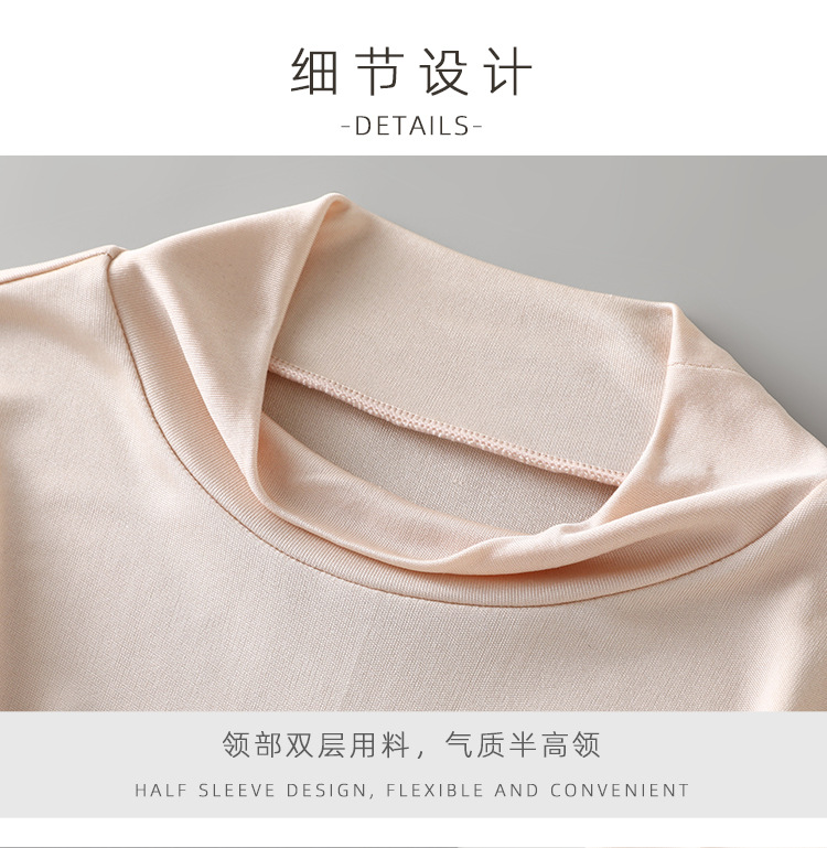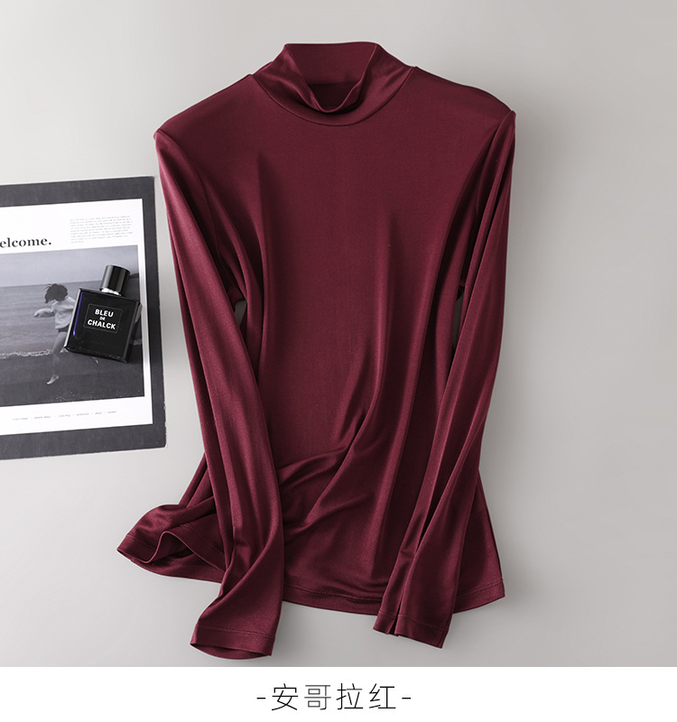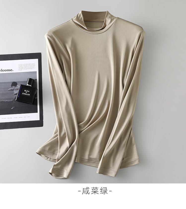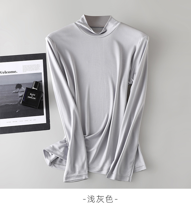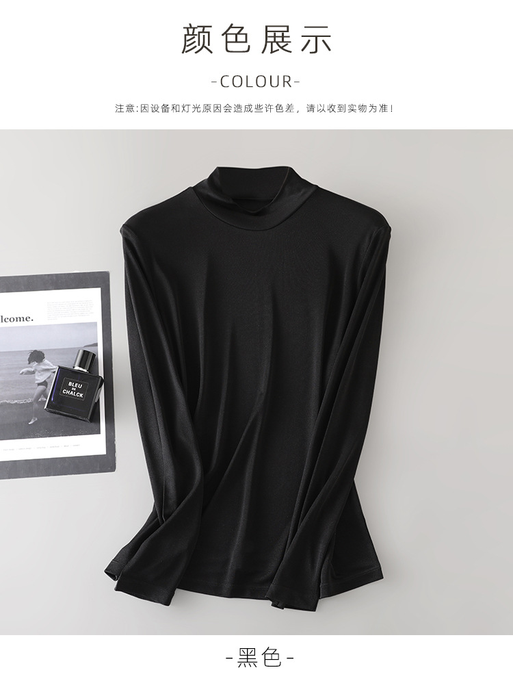 丁摩 100%桑蚕丝半高领长袖真丝亲肤透气打底上衣