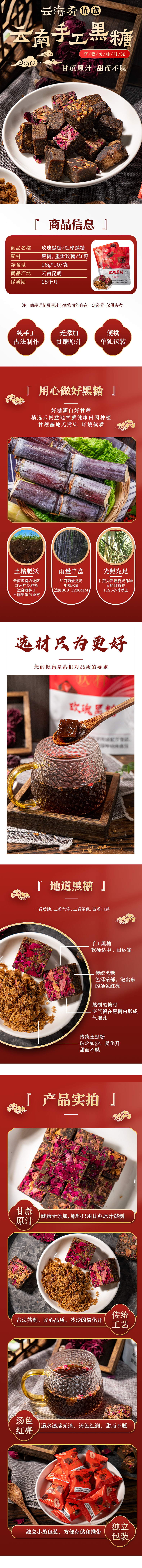 【云海肴手工黑糖】玫瑰/红枣黑糖 甘蔗原汁制作 甜而不腻 色泽浓郁 泡出来的汤色红亮 易划开 160g/袋 4种规格任选