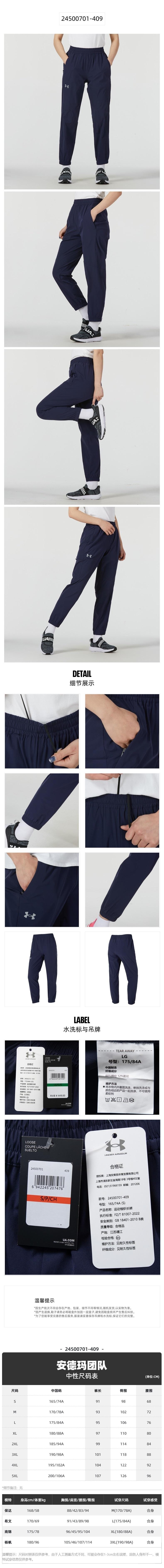 UnderArmour安德玛 男女同款梭织长裤 24500701-409