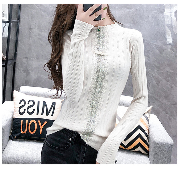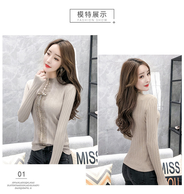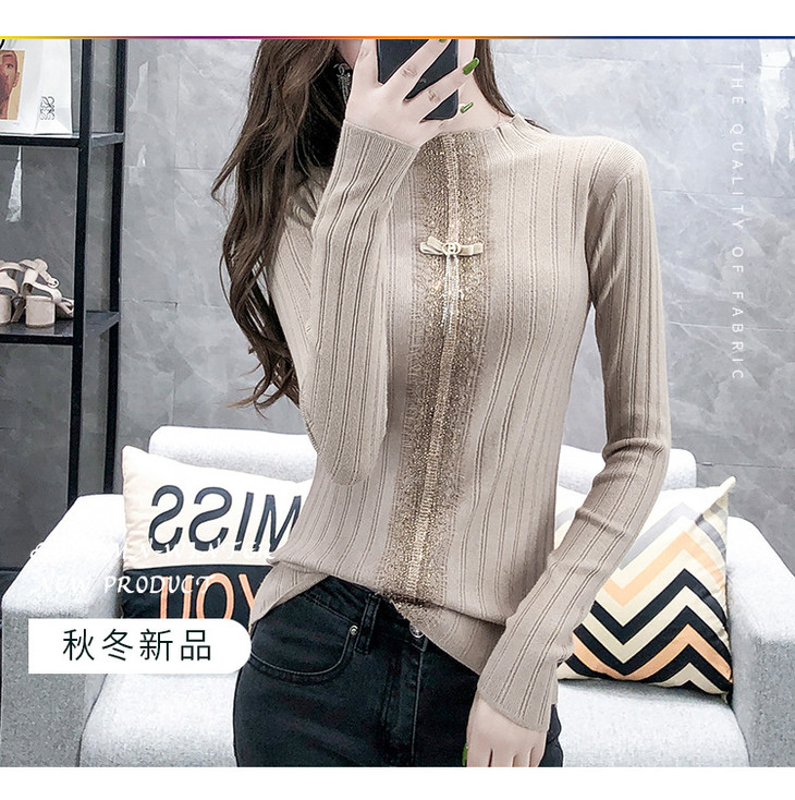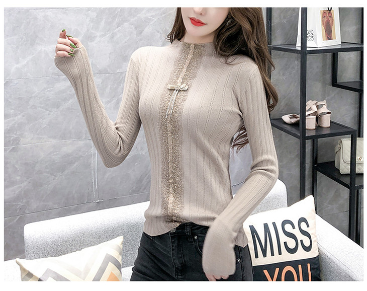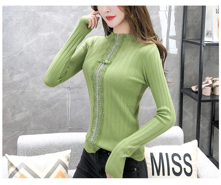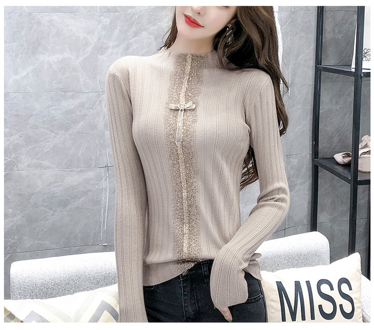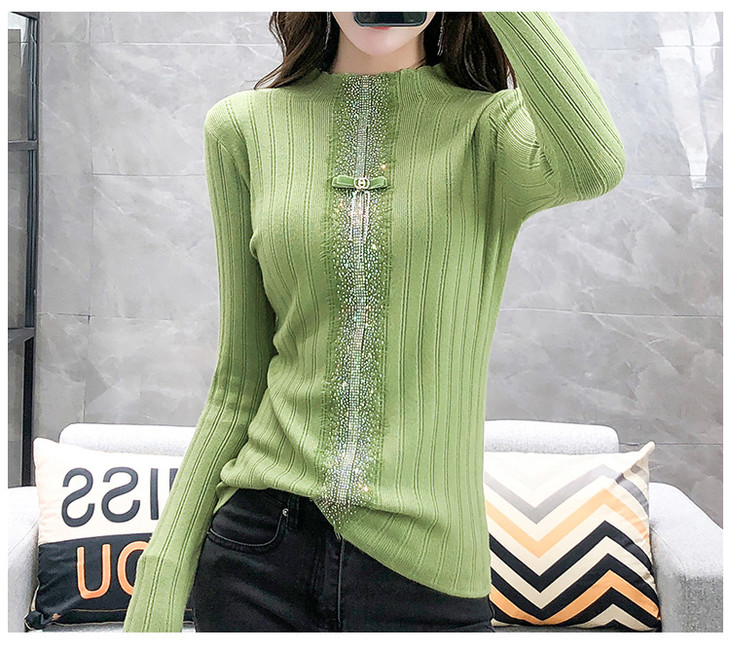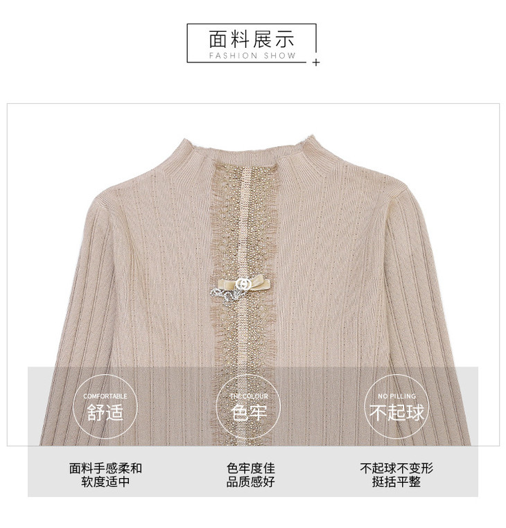 FH-81986秋冬加厚半高领蕾丝镶钻蝴蝶结修身毛衣