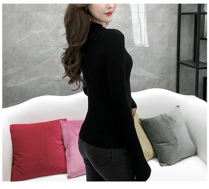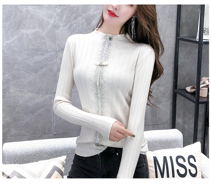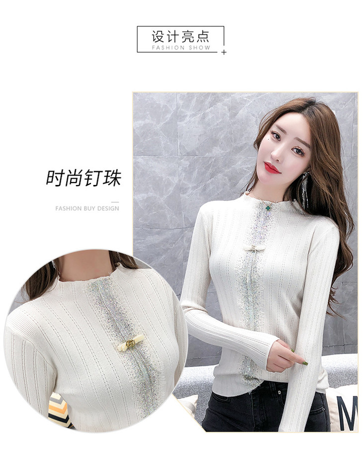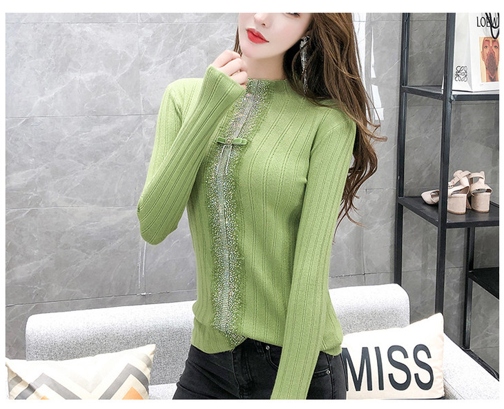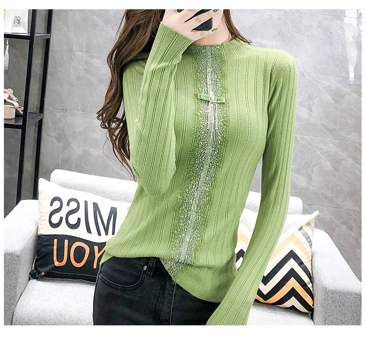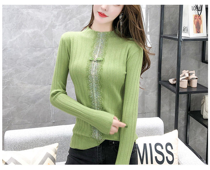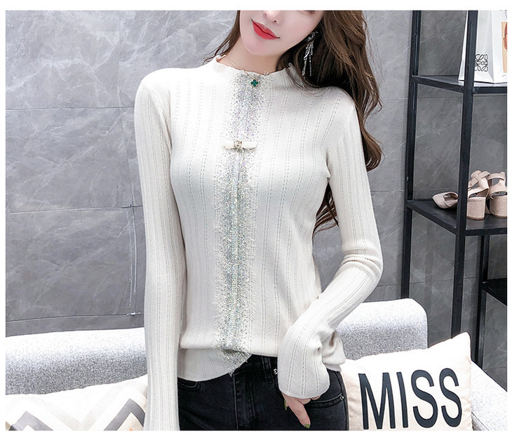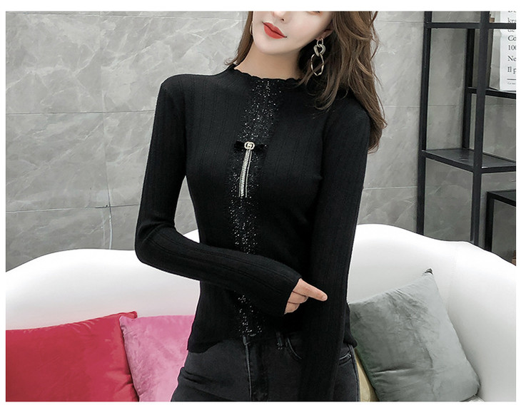 FH-81986秋冬加厚半高领蕾丝镶钻蝴蝶结修身毛衣