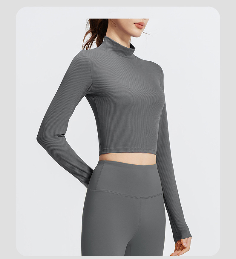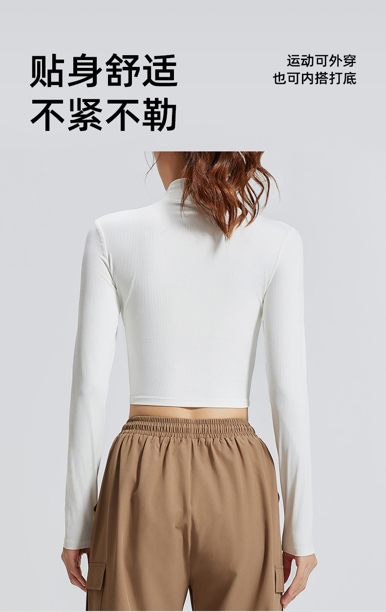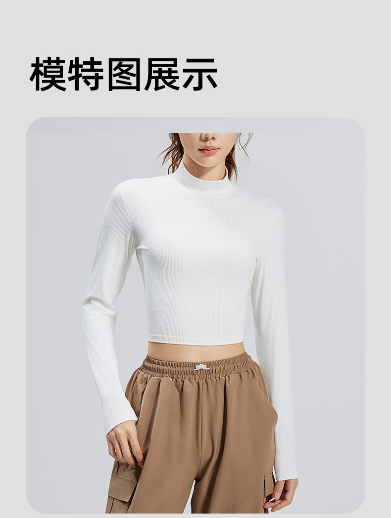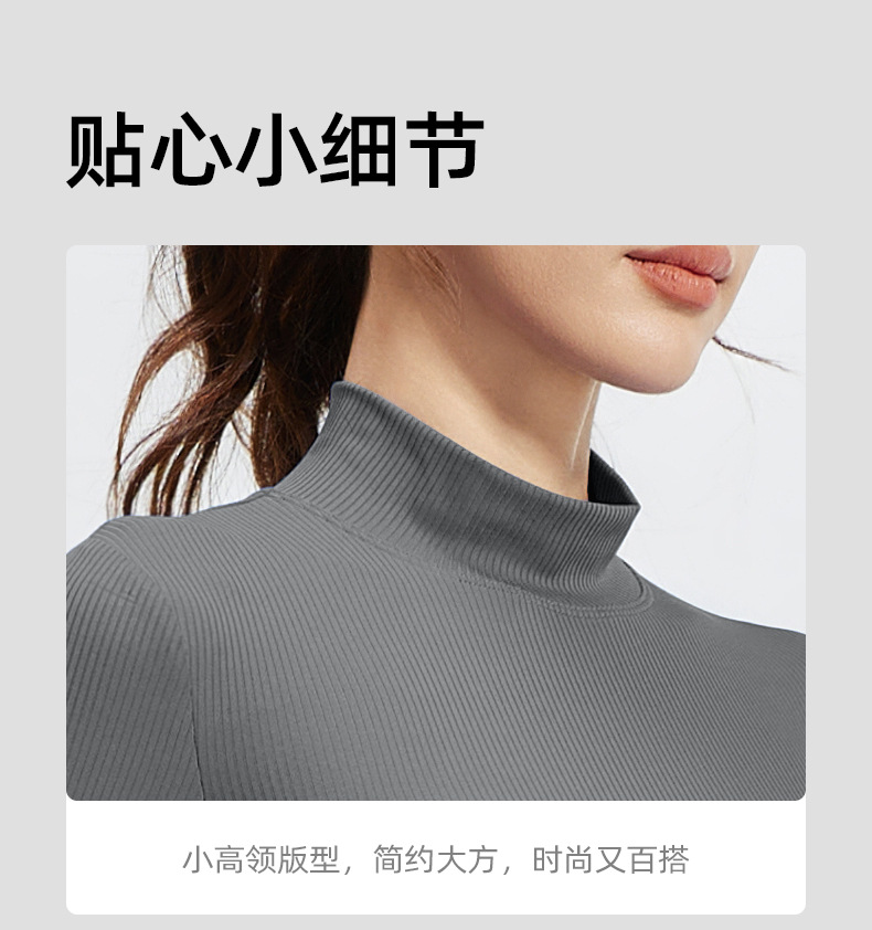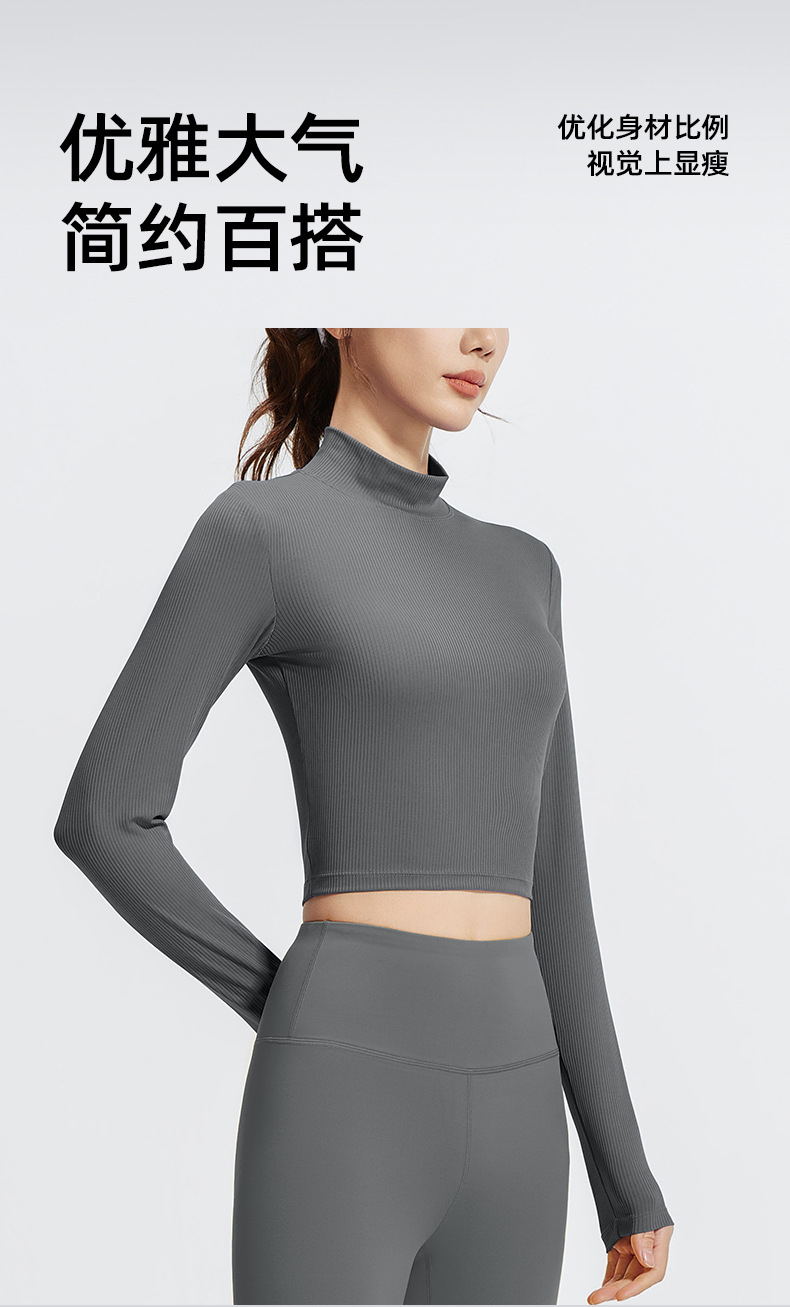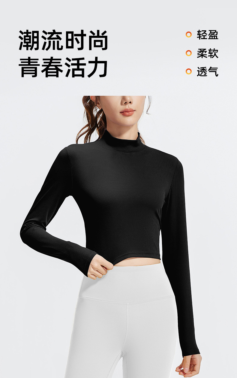 跃牌【瑜堂系列】条纹小高领瑜伽长袖纯色修身透气高弹运动长袖JYTC015