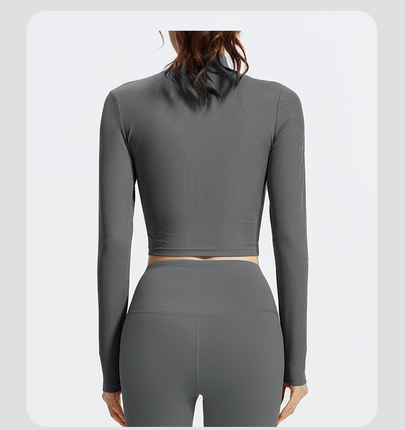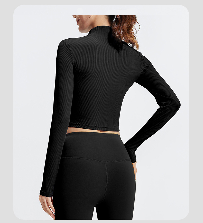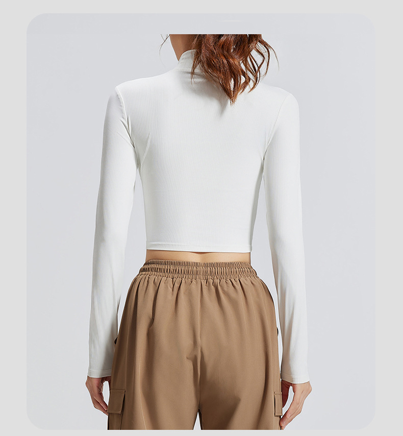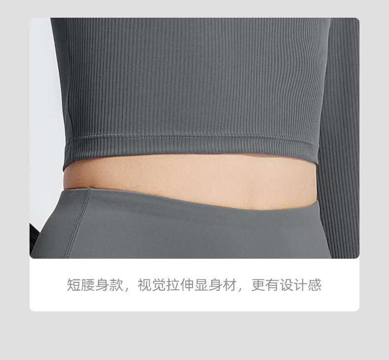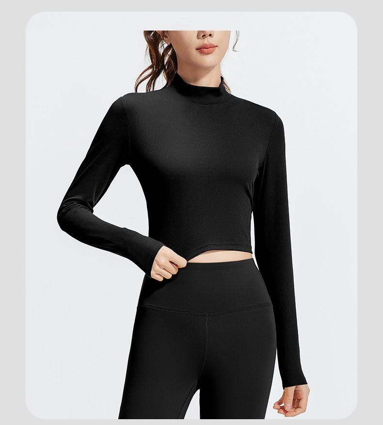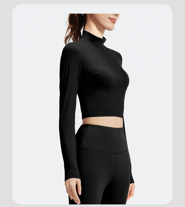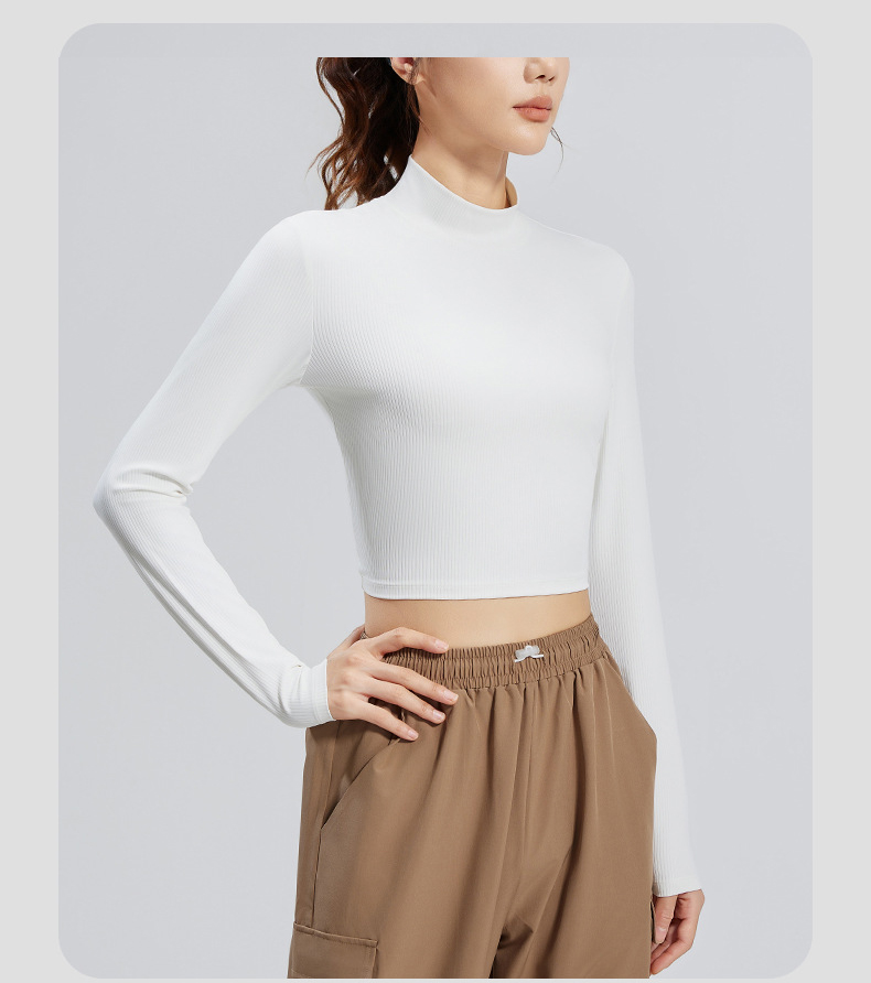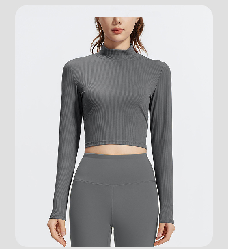 跃牌【瑜堂系列】条纹小高领瑜伽长袖纯色修身透气高弹运动长袖JYTC015