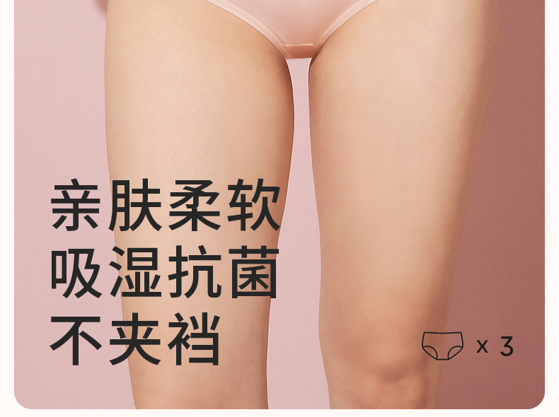 奶糖派 3条装自在内裤舒适无痕透气中腰平角裤女三角短裤【该商品不支持用券】