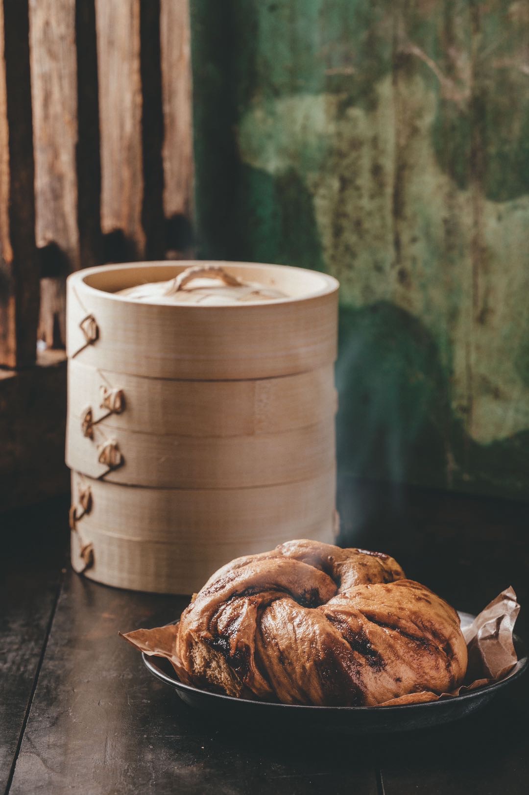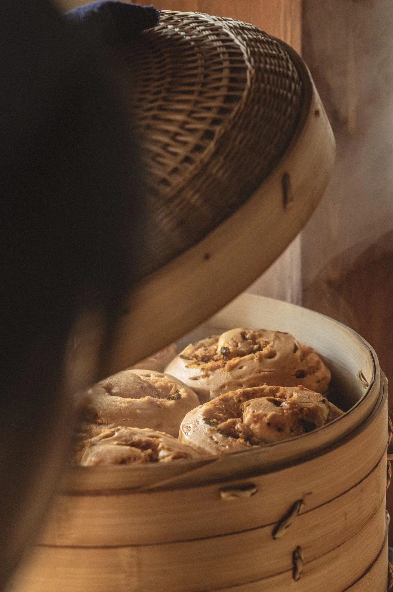 蒸汽将麦子和荷叶的香气,加上红糖、枣泥的味道从面分子中一点点逼透出来,馒头逐渐膨胀起来。