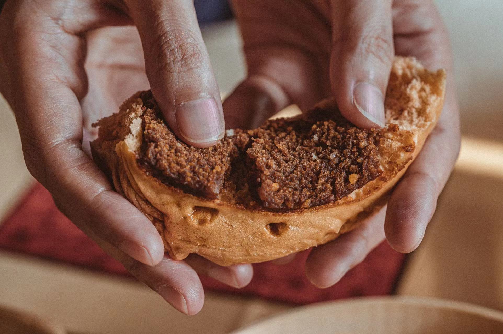 一口下去,迸发强烈的层次感,红糖馒头的蓬松清甜,海苔本身的酥脆,肉松的咸鲜肉香,风味在口中如浪潮席卷,脆韧、清甜、蓬松、咸鲜…韵气回味中,还余留酥香于口中,不论是口感、味道、食材,都搭配得恰如其分。