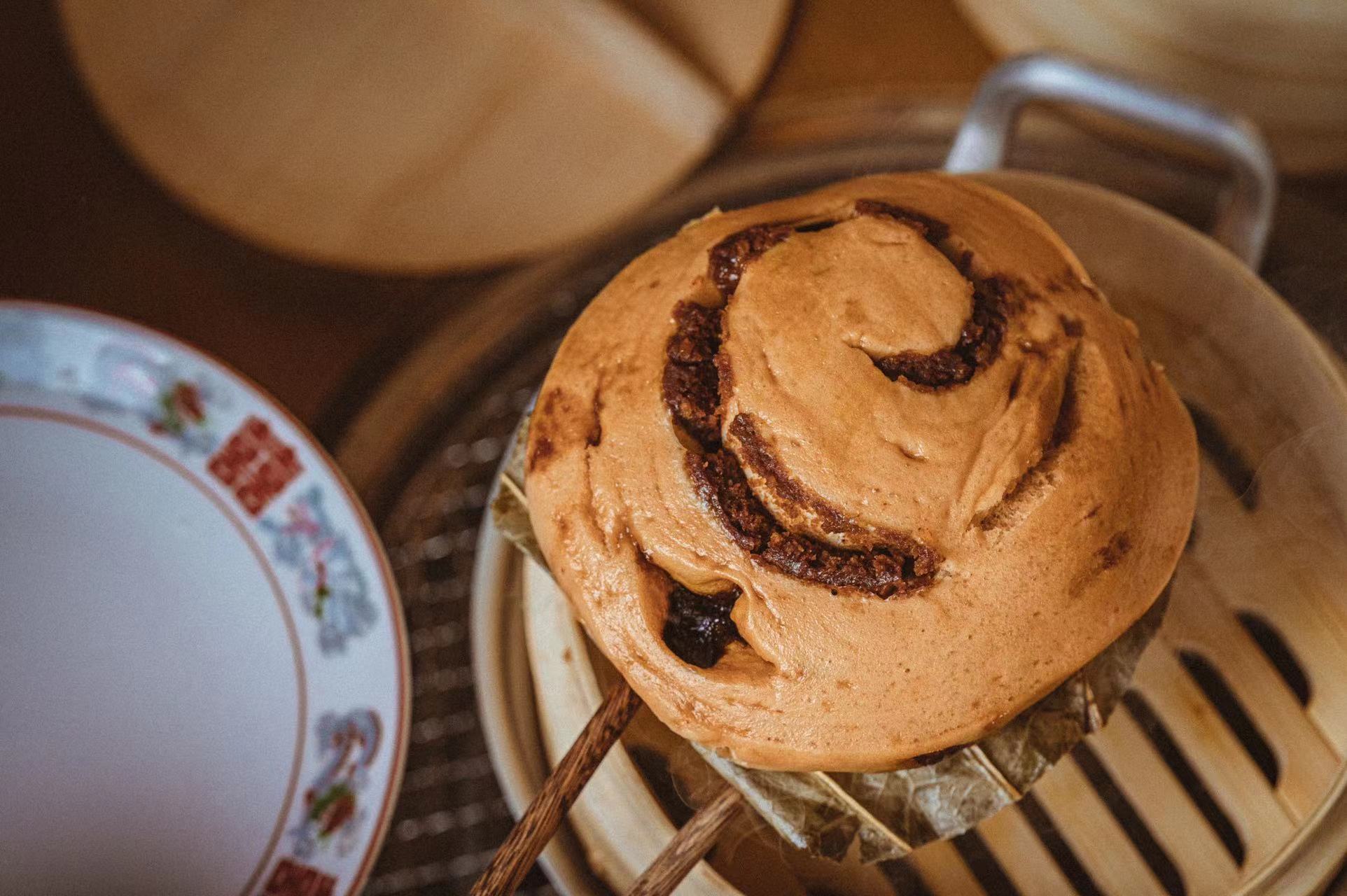 加上蓬松绵软又有嚼劲的红糖馒头,绵密之上保持起沙的细腻颗粒感,蒸煮后,红糖沁出表皮,辅以荷叶清香…是乡间的晨昏里孩子们像小马一样的奔跑的动力。