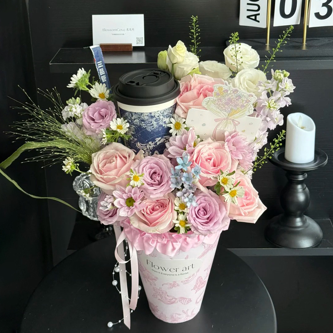 秋天的第一杯奶茶-奶茶花束鲜花咖啡手提花盒送闺蜜女友男友礼物立秋奶茶花束(奶茶随机)