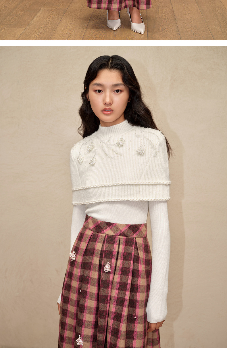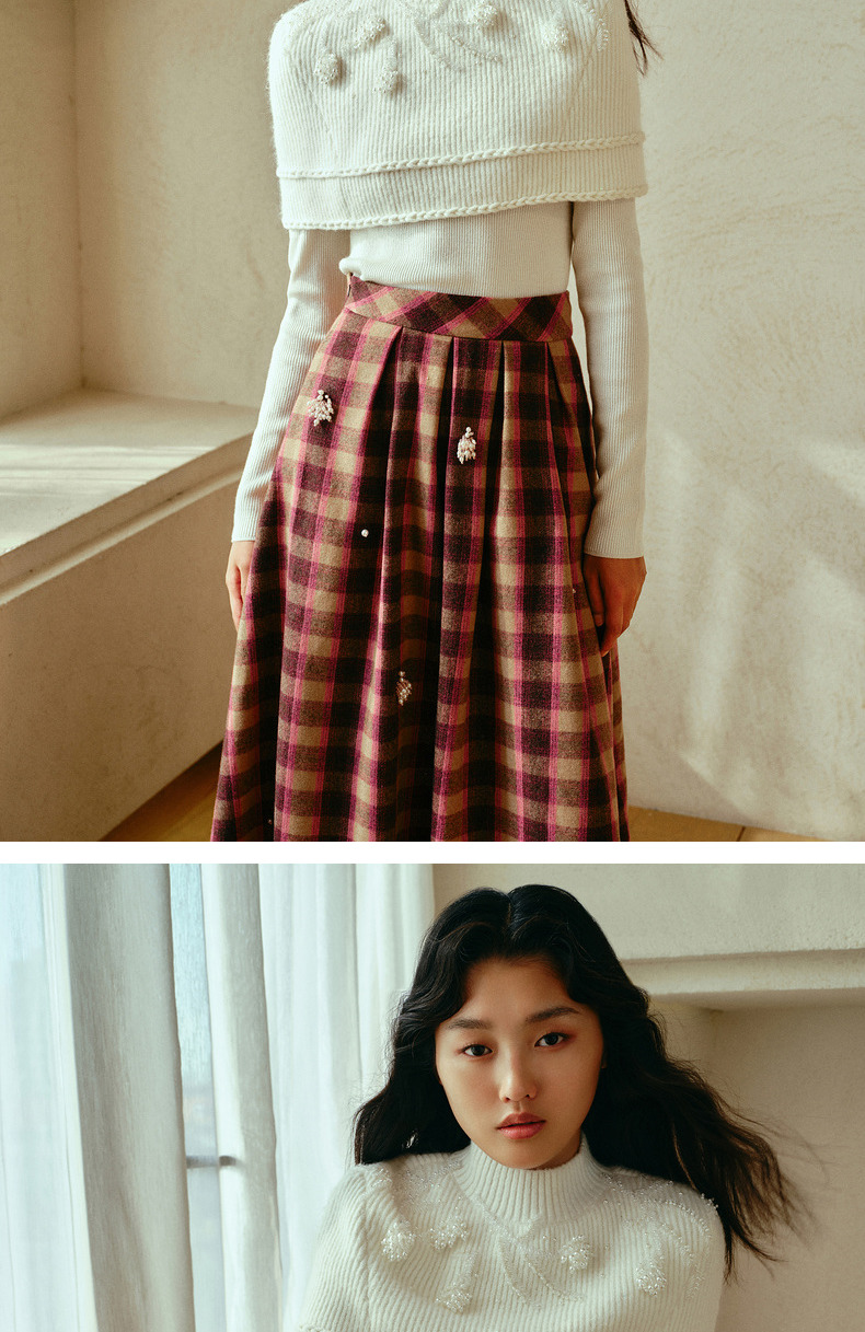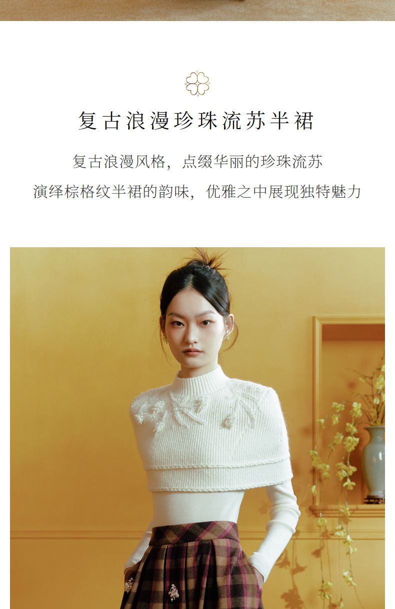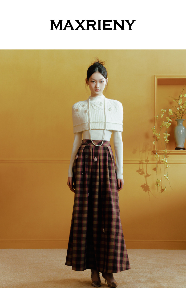 【商场同款-新春系列春日银柳】MAXRIENY复古浪漫珍珠流苏半裙(货号:MC88SK798)