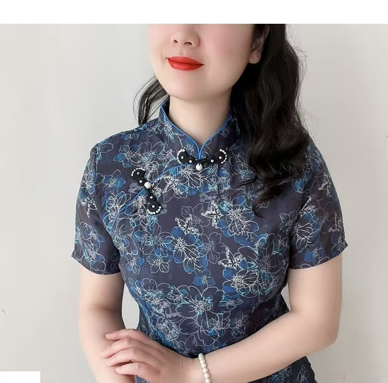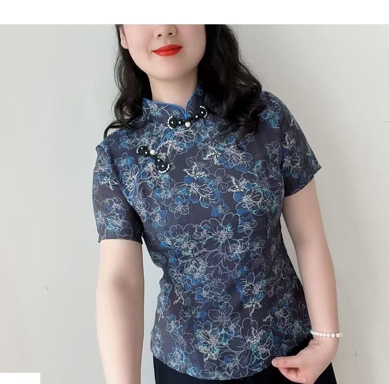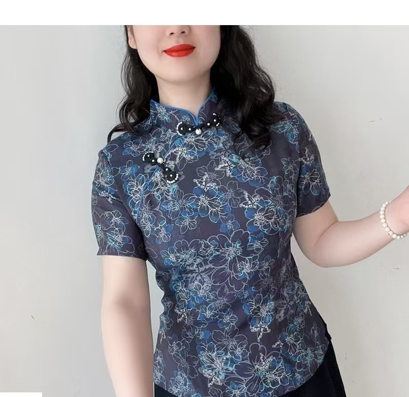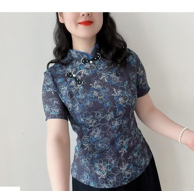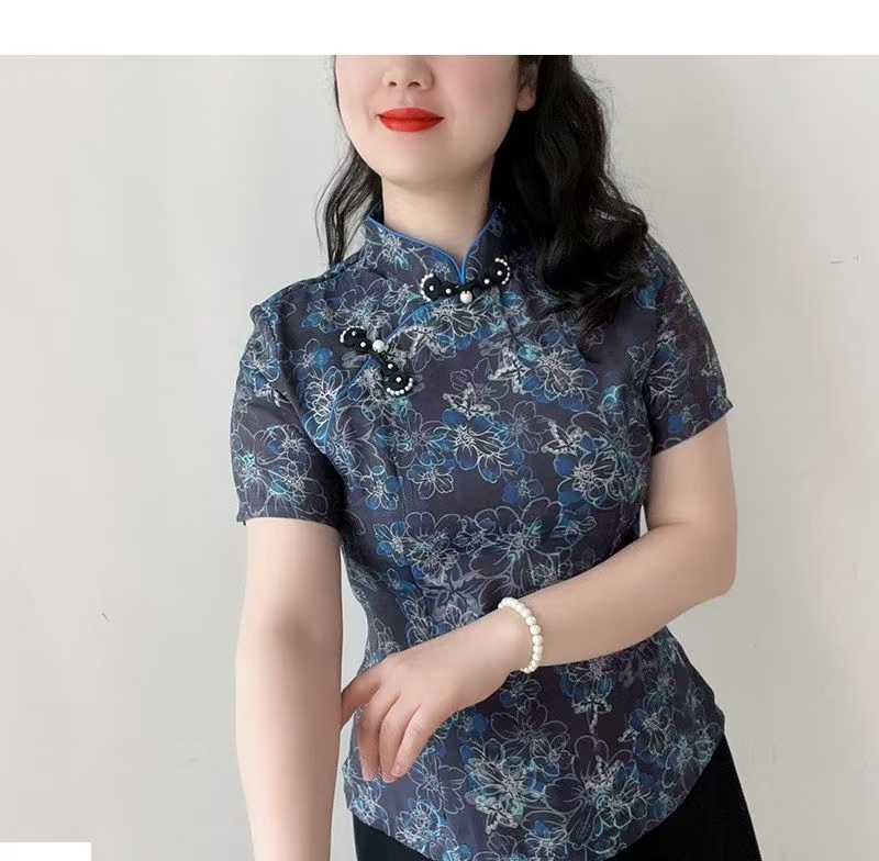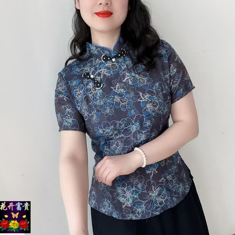 短袖中国风旗袍上衣唐装女改良旗袍上衣修身显瘦显贵气中老年