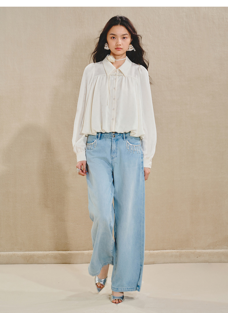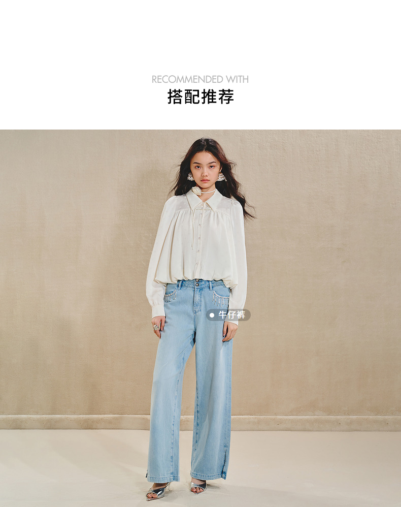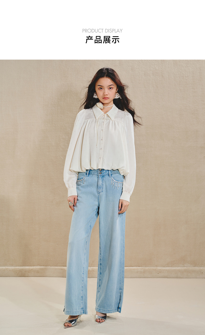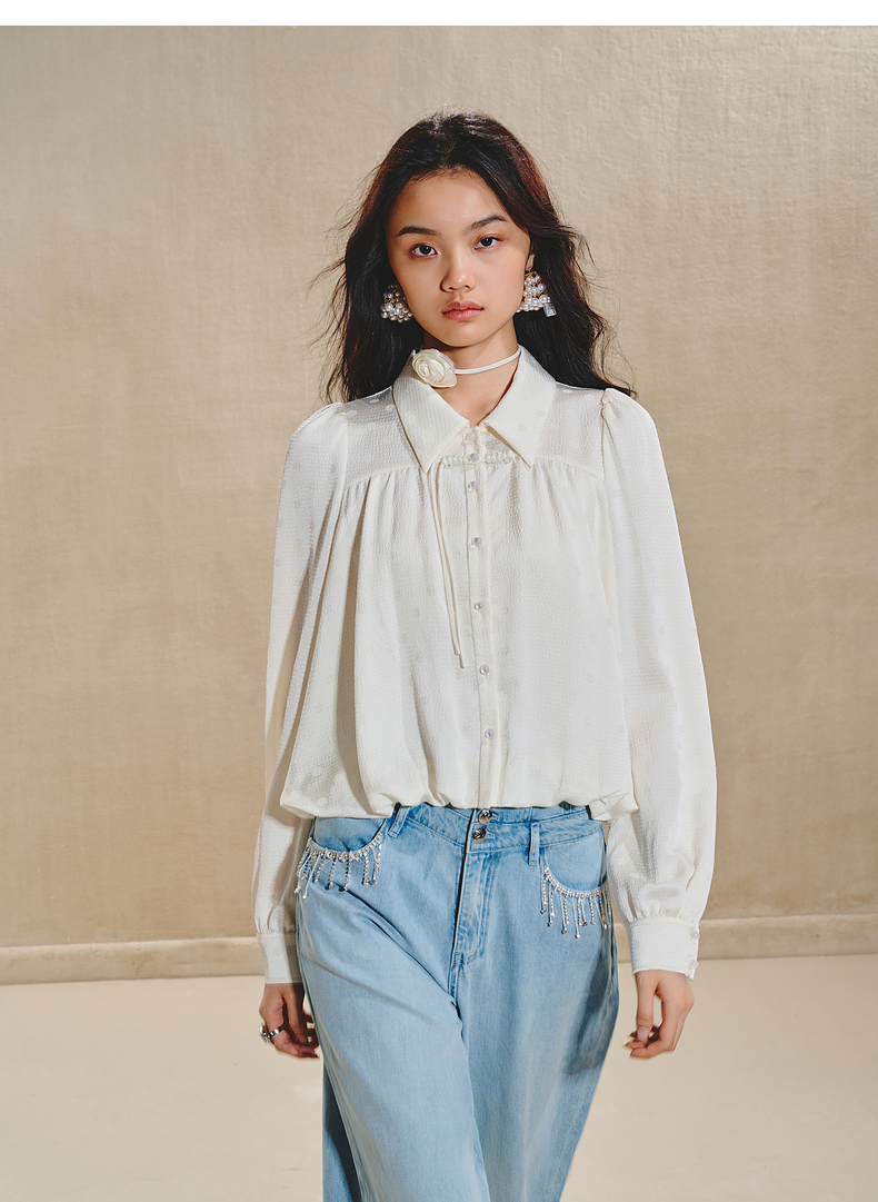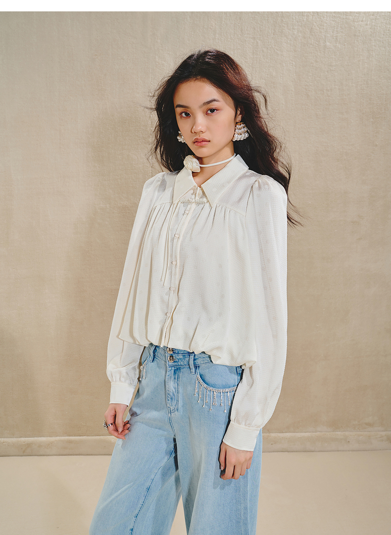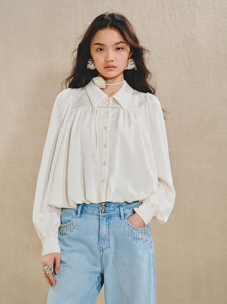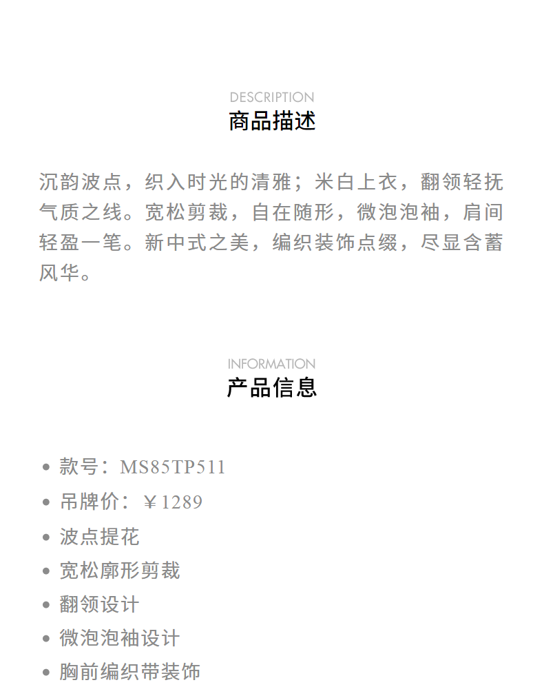 【商场同款】MAXRIENY清雅新中式衬衫女2024秋冬翻领波点优雅上衣(货号:MS85TP511)