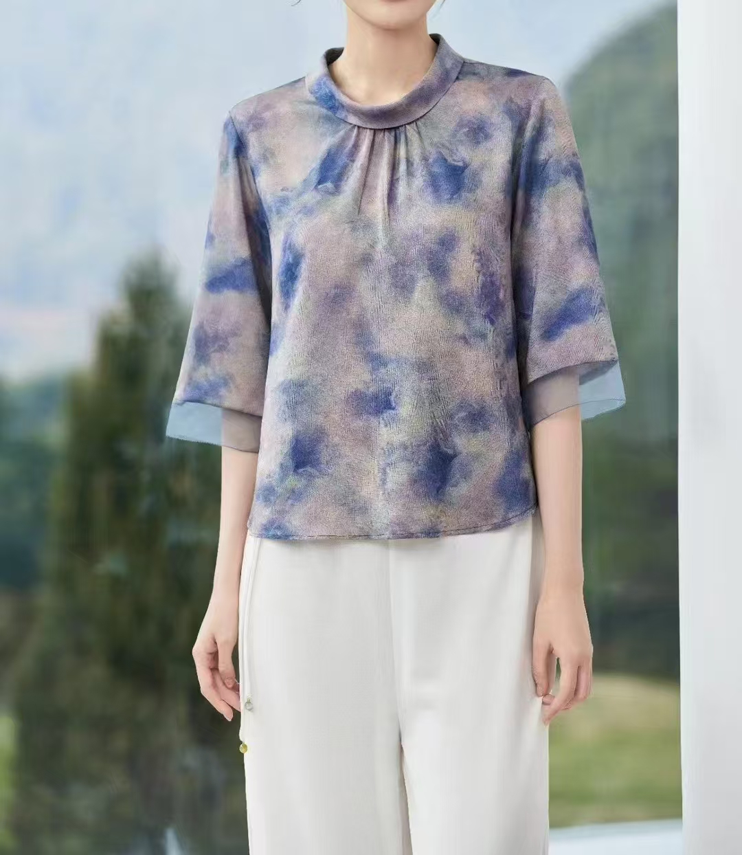 【品名】FS竹纤维女士时尚精致炫彩五分袖6678