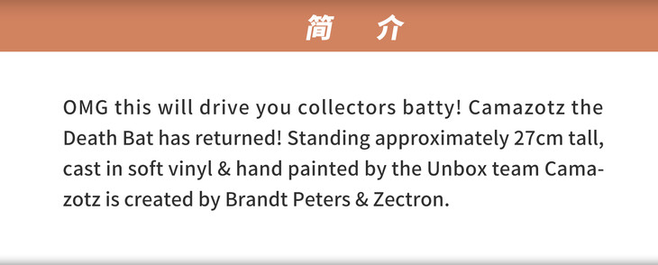 Unbox 骷髅蝙蝠 原色 CAMAZOTZ The Death Bat