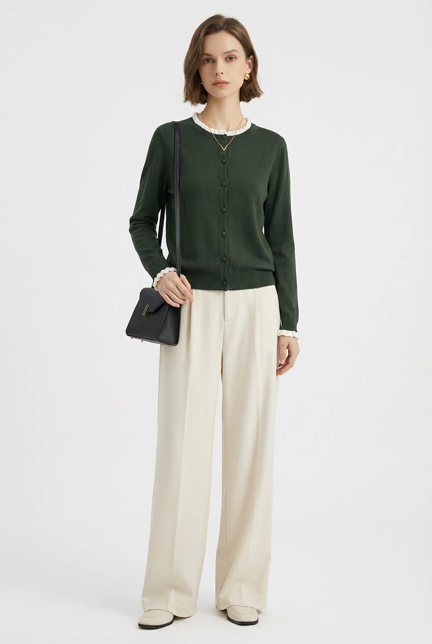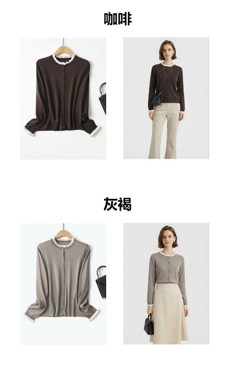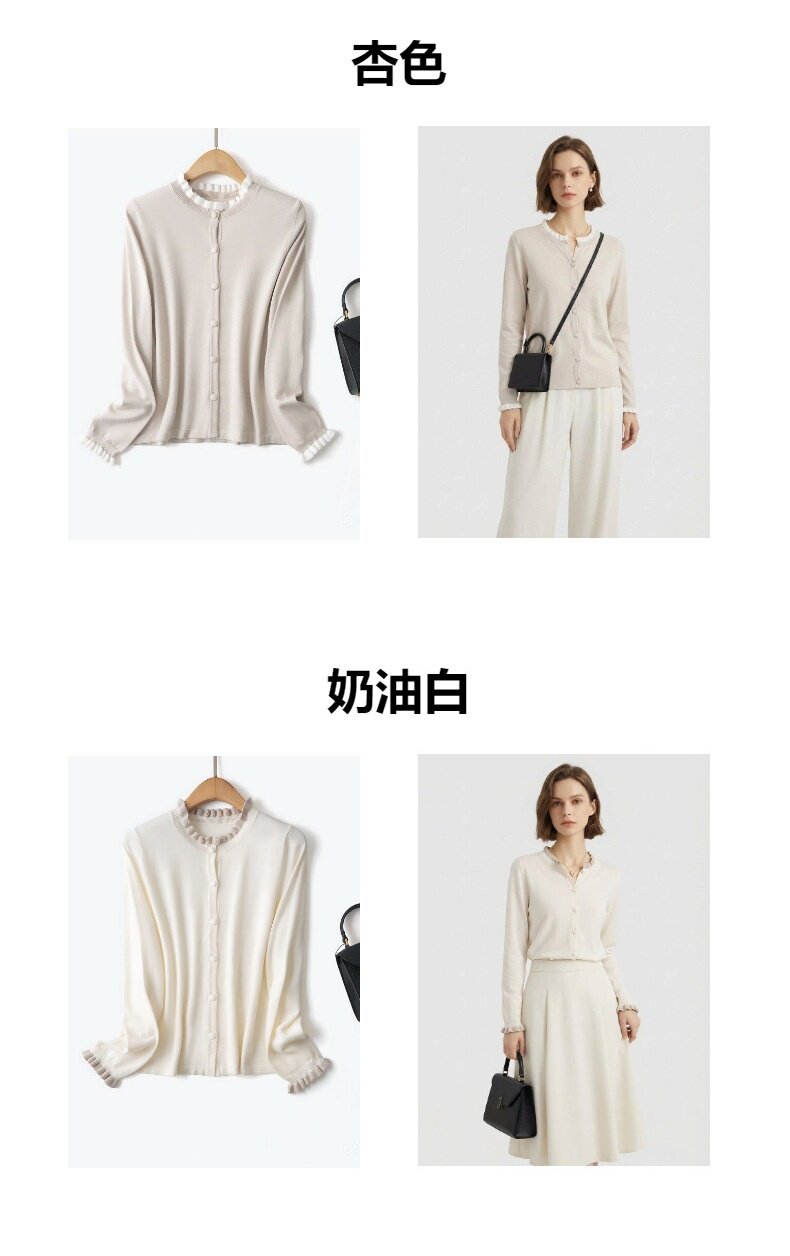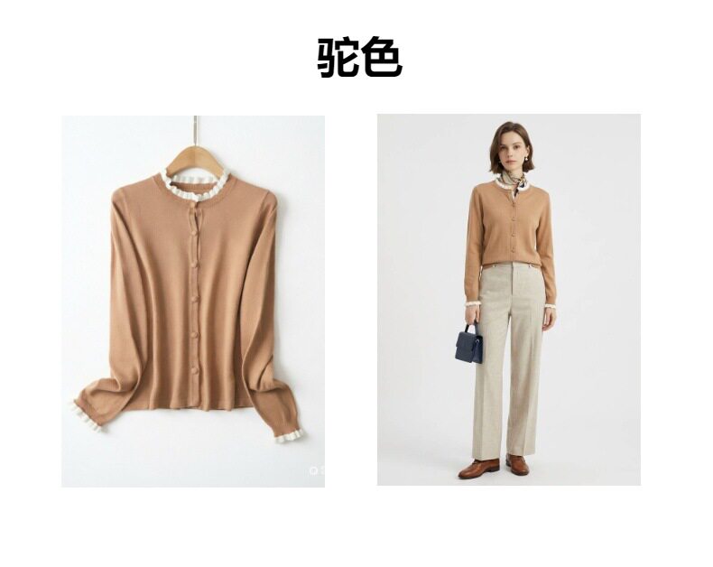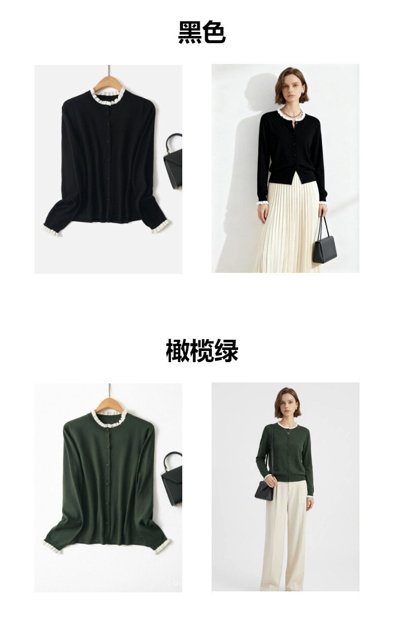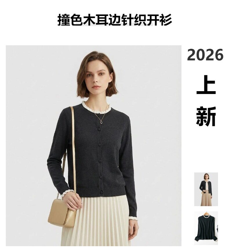 「自」全新升级【铂金会员146/天猫199/差价53】(15355)洛诗琳气质撞色薄款针织开衫2026新款木耳边长袖百搭外套