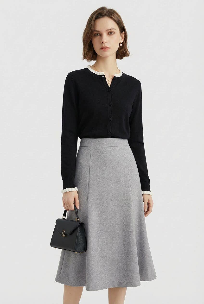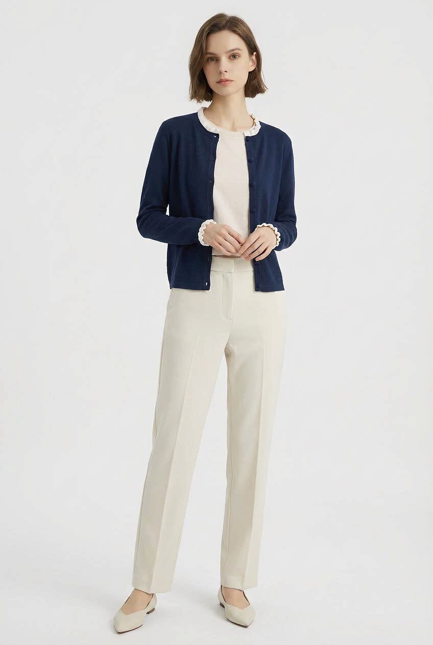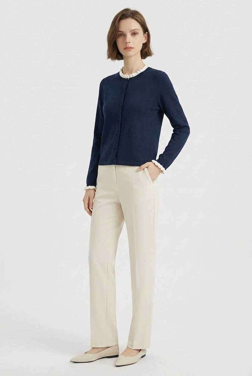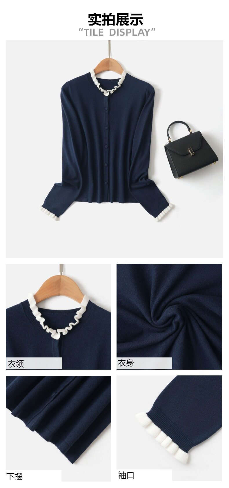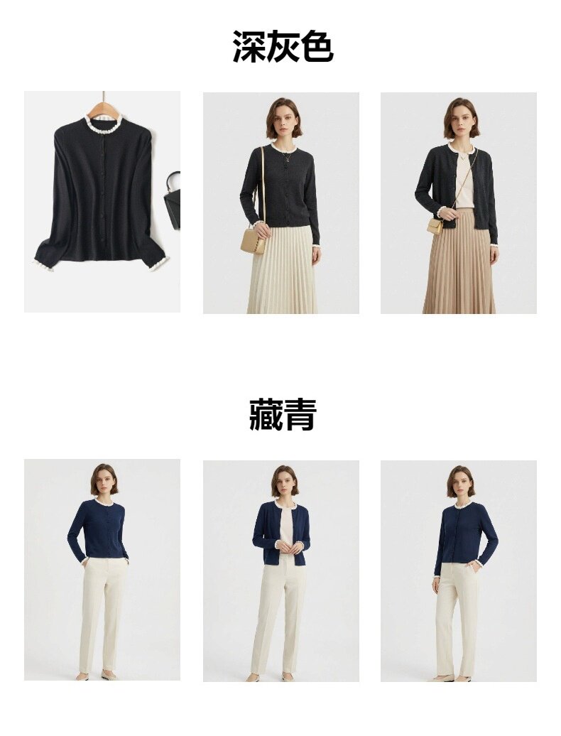 「自」全新升级【铂金会员146/天猫199/差价53】(15355)洛诗琳气质撞色薄款针织开衫2026新款木耳边长袖百搭外套