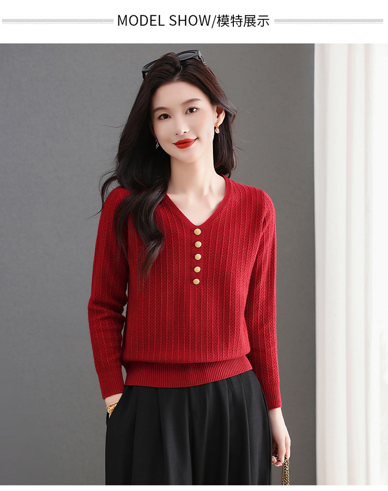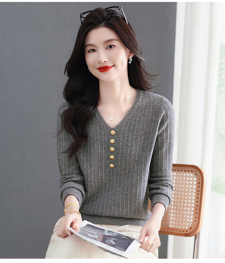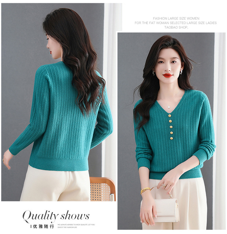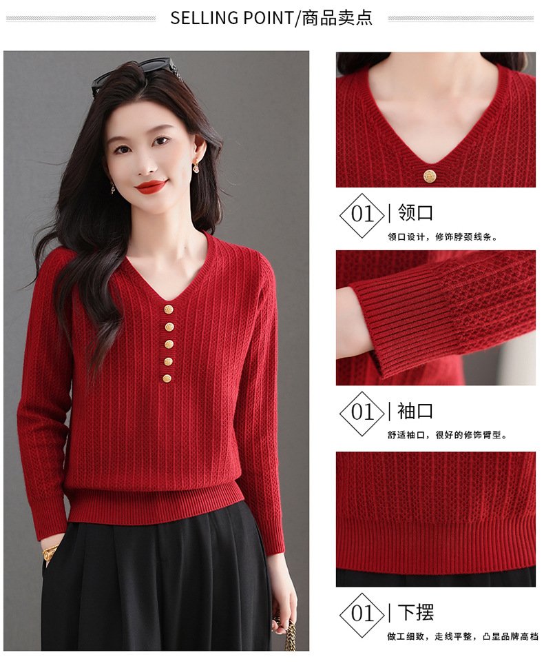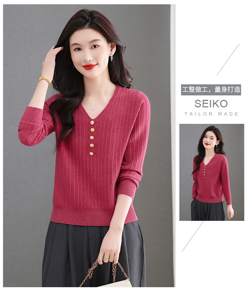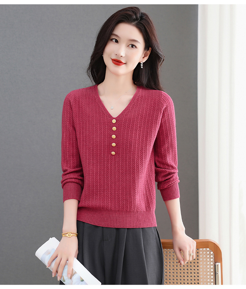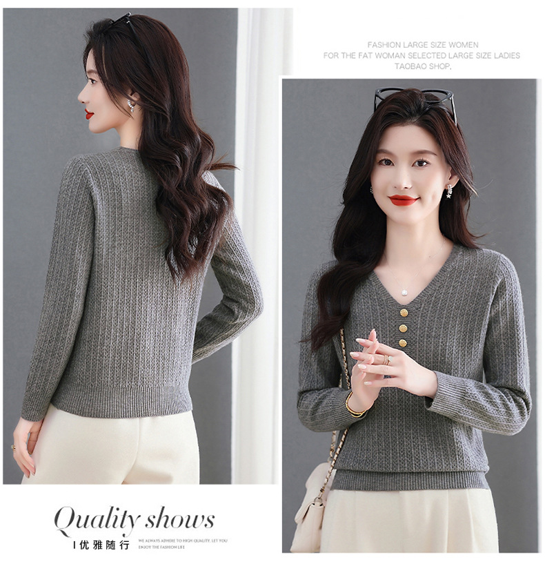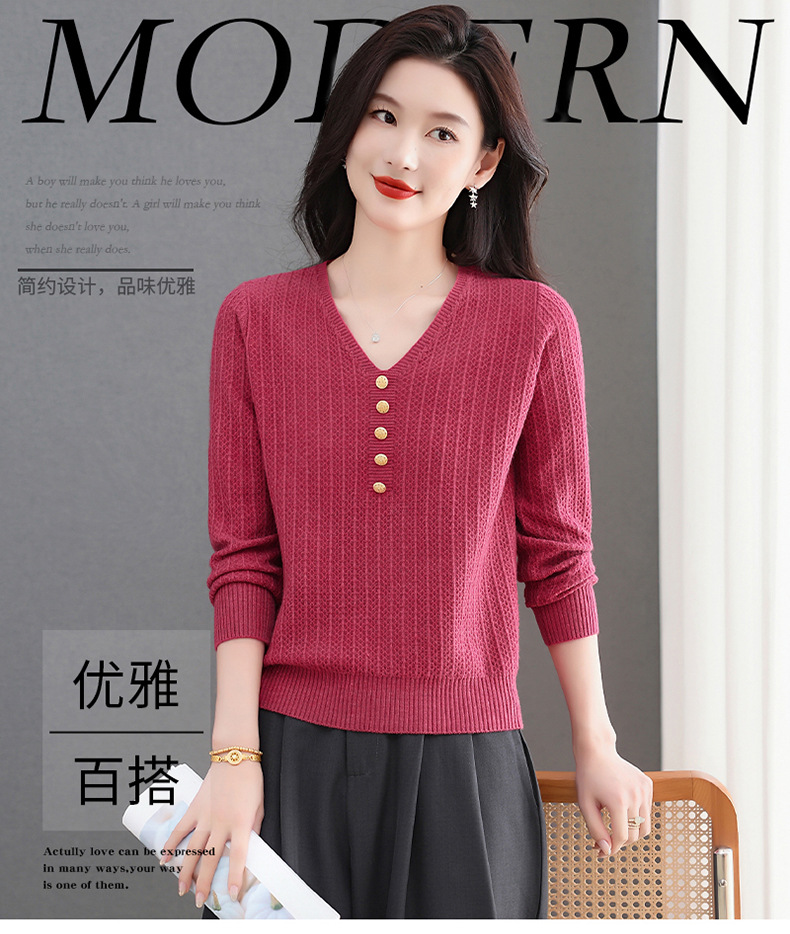CC女士早秋v领针织衫长袖上衣洋气妈妈秋装2025新款春秋打底衫毛衣