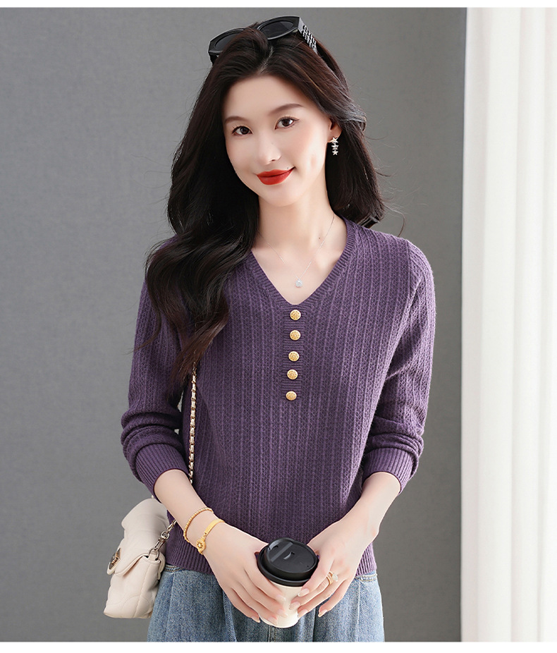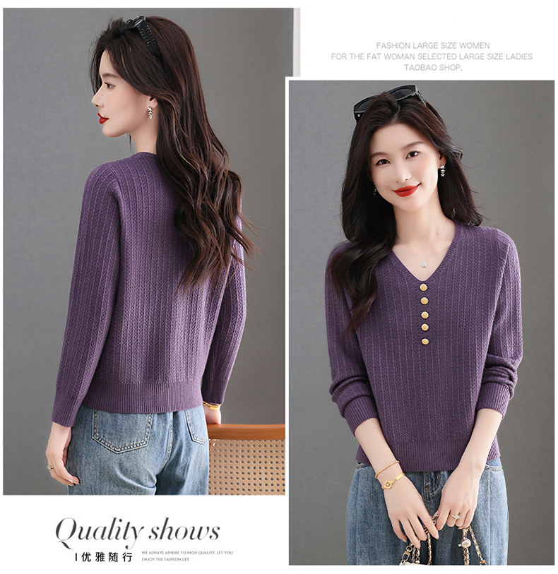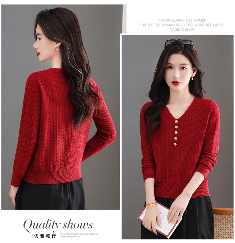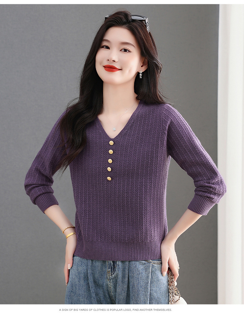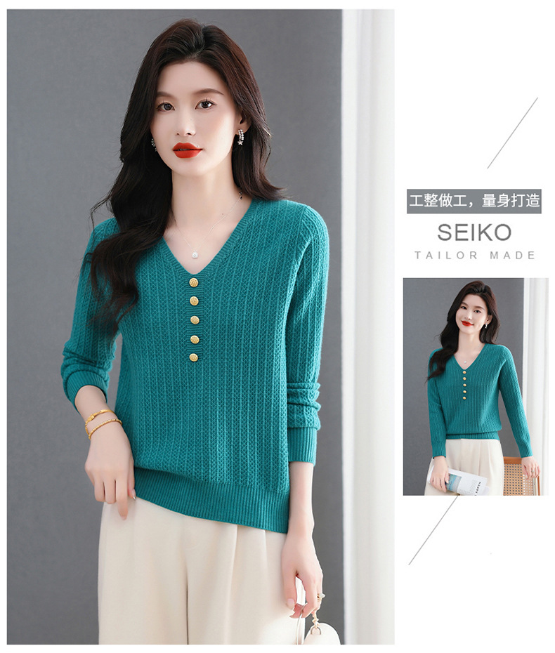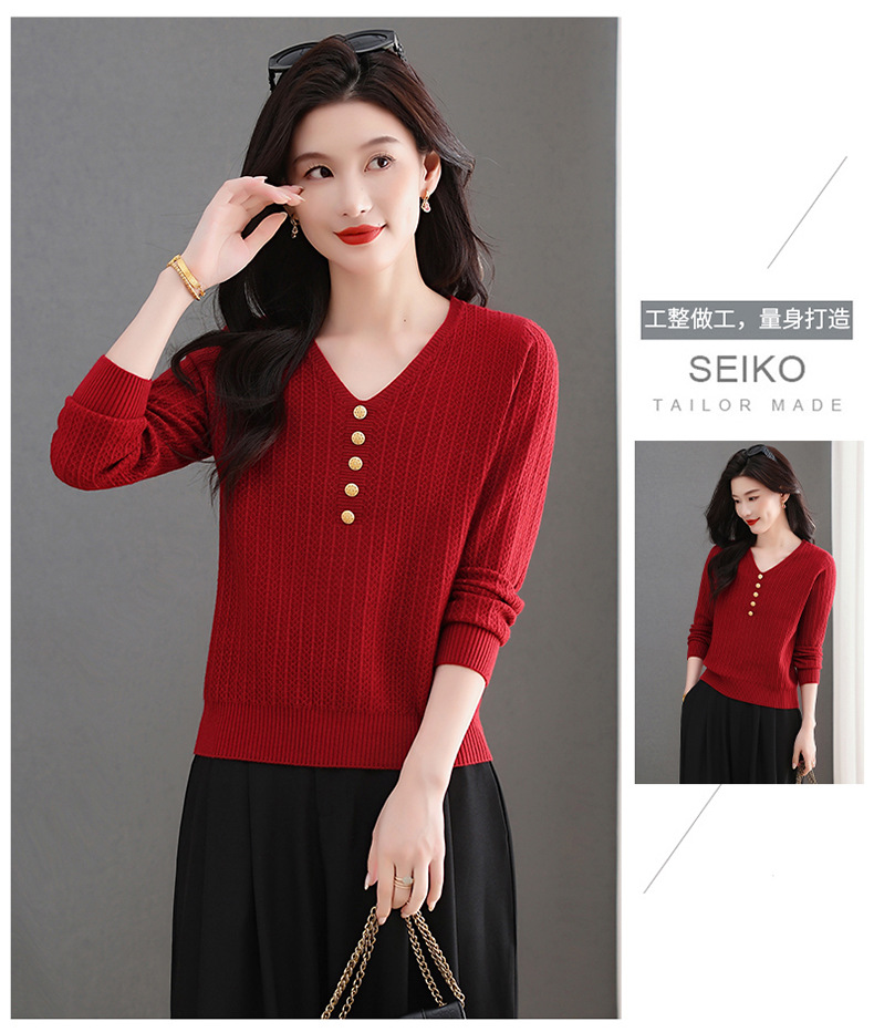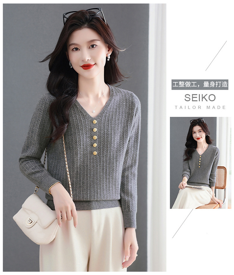 CC女士早秋v领针织衫长袖上衣洋气妈妈秋装2025新款春秋打底衫毛衣